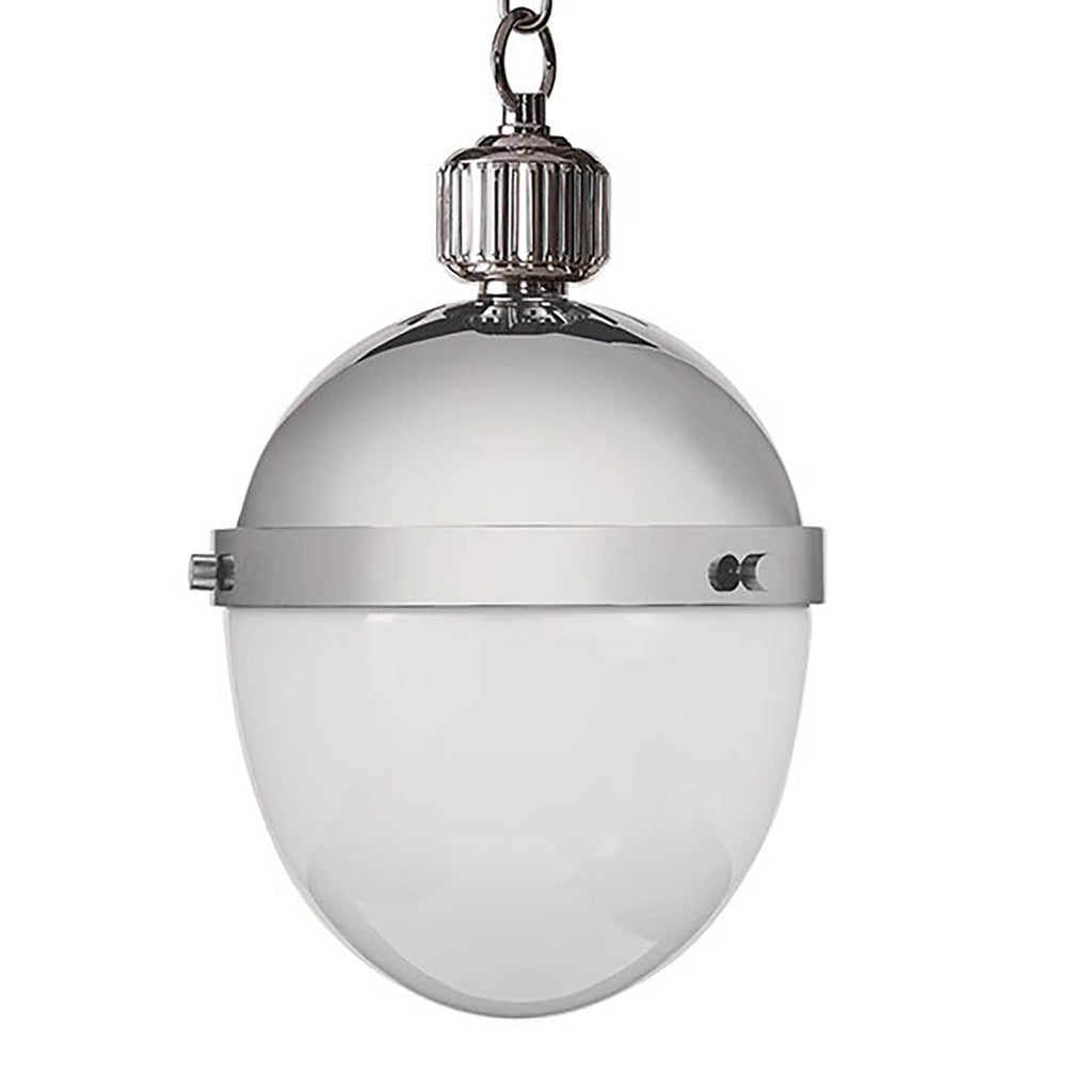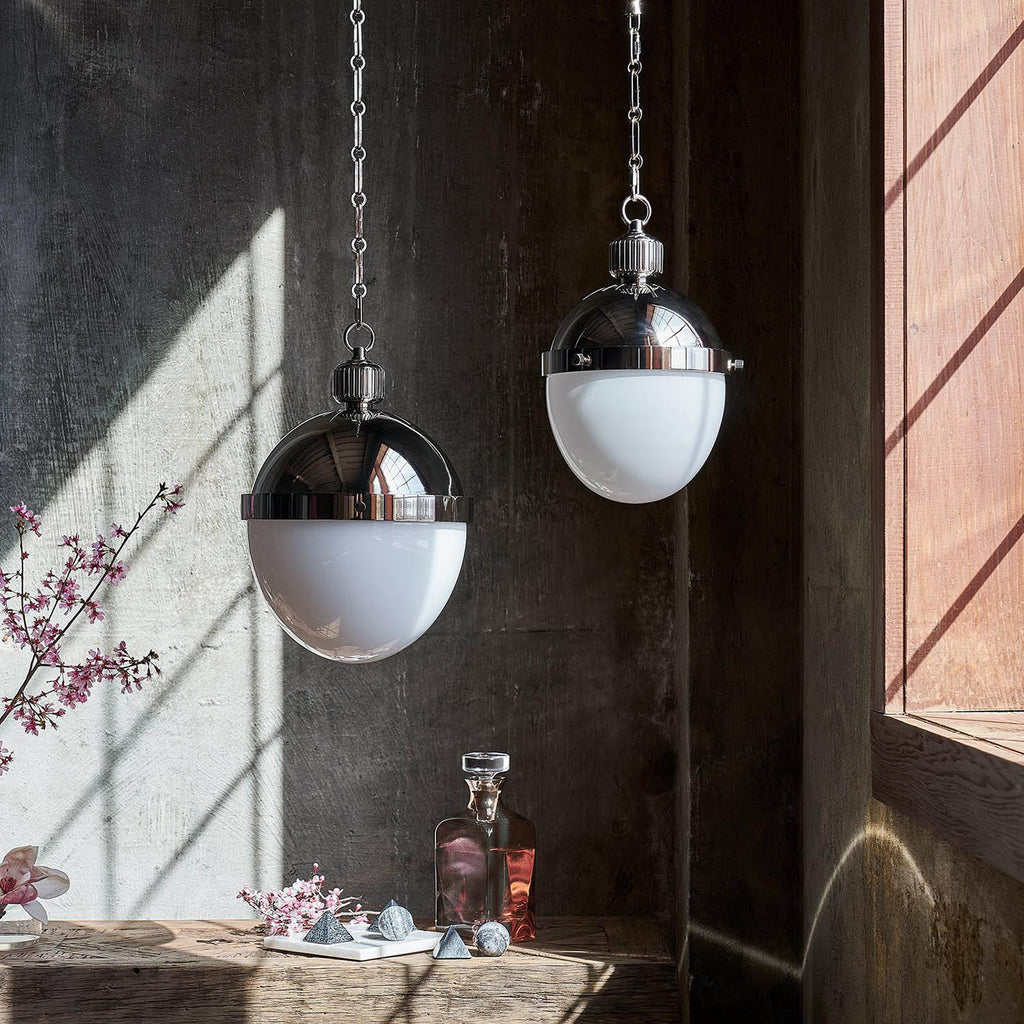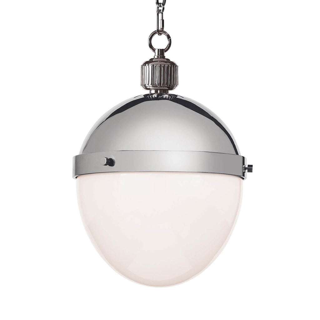 Our Otis Pendant Large blends 20th-century style with modern materials for a timeless look—in a generous, statement-making size. Classic milk glass gives a soft, diffuse light that is gentle on your eyes. It's the perfect way to add a warm glow in a breakfast room, over a large kitchen island or in an open loft-space. The clean polished nickel finish pairs beautifully with white marble and surfaces with cool undertones.