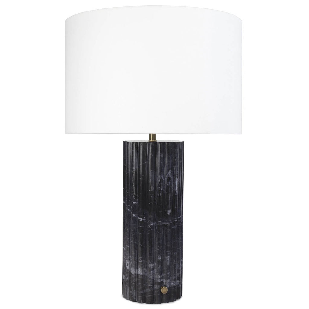 A little dramatic, but totally timeless. Indian Black Marquina marble is prized for its inky black color with a distinctive white pattern that evokes lightning across the midnight sky. Carved in scalloped pillars, the Tambour Marble Table Lamp strikes an impressive pose. Paired with brass hardware, it makes a confident statement in your entry hall, living room, bedroom or on a console.