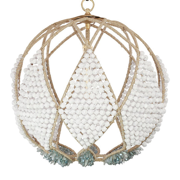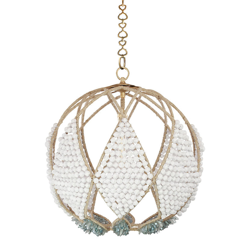 The center of attention in any room, our Adelaide Beaded Chandelier features a unique spherical aspect with repetitive patterns showing a Ro Sham Beaux twist on stained glass.