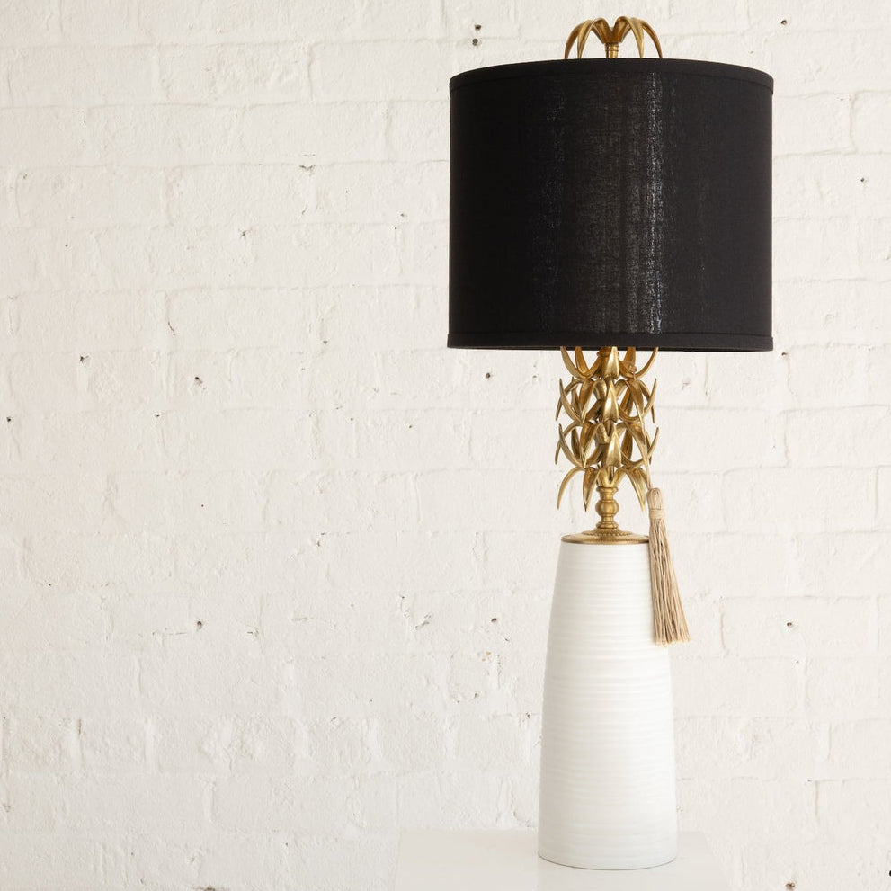 The Ananas Table Lamp features subtle, repetitive detailing that adds sophisticated personality while simultaneously bringing bubbly character through its driven metalwork.