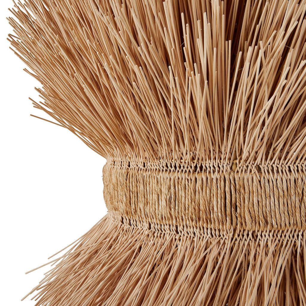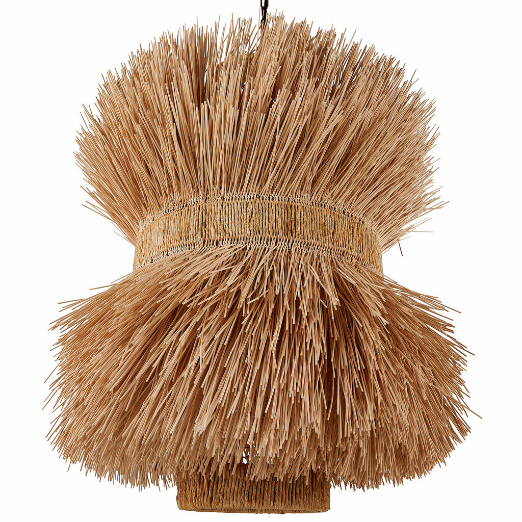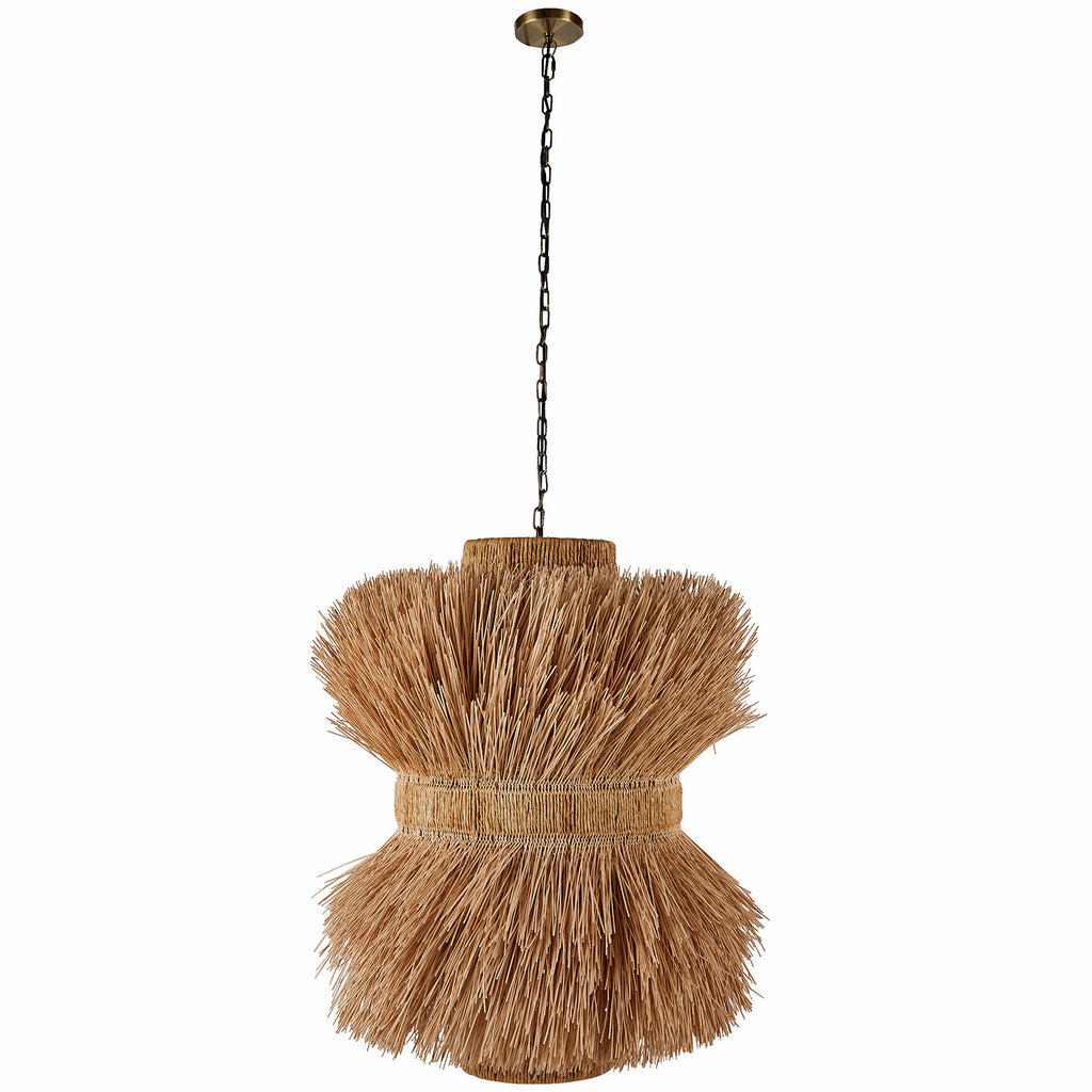 Our cinch-waist fixture of woven natural rattan offers the fringe benefit of working within both coastal and modern interiors. Recalling a bundle of kindling, this intricately woven piece allows just the right amount of illumination. Hung from an antique brass-plated iron chain. Additional chain available. Finish will vary.