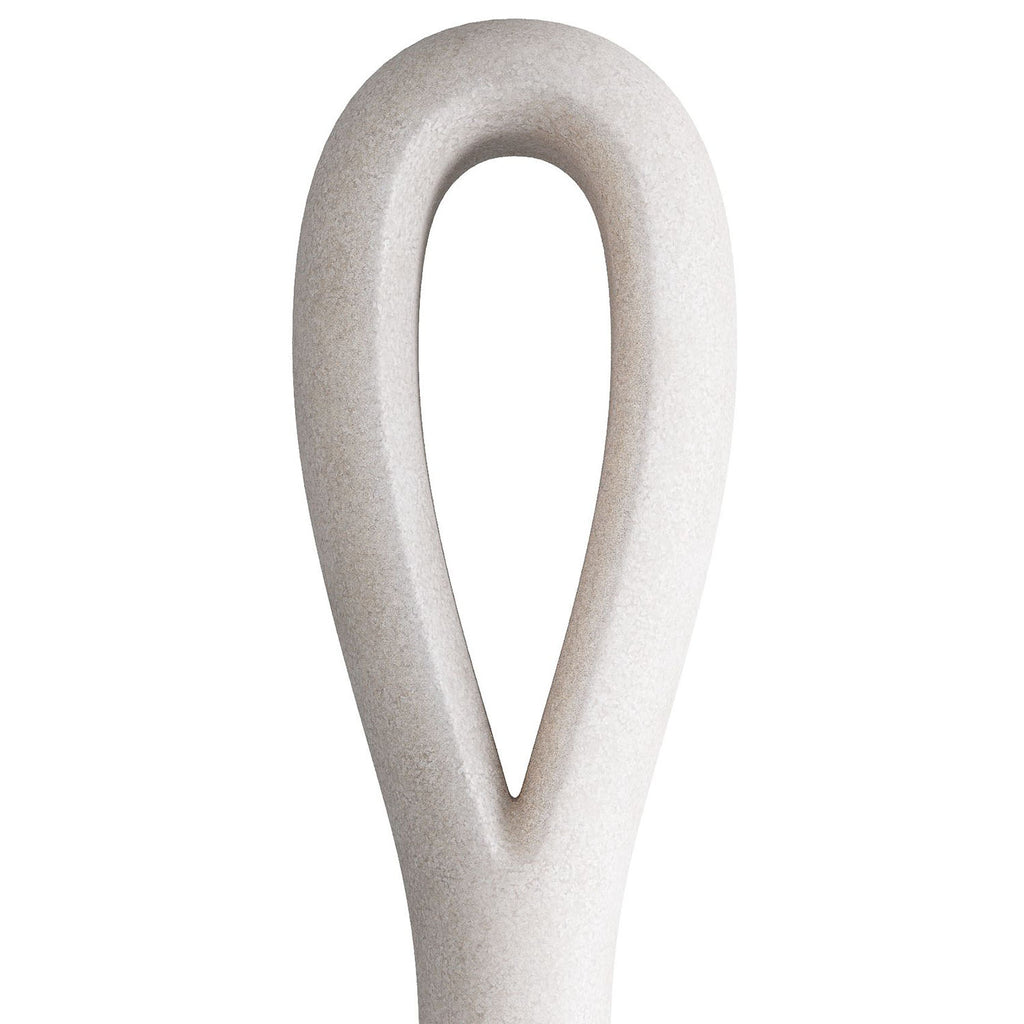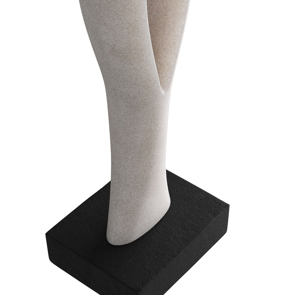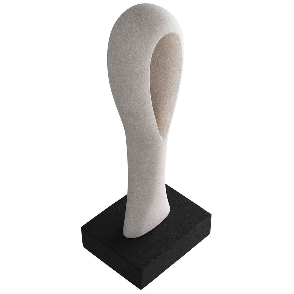 Conceptual in focus, monolithic in presence—a tall keyhole sculpture is a modern work of art. Crafted of ivory ricestone composite mounted on an black ricestone composite base, it is impactful in any setting. Finish will vary.