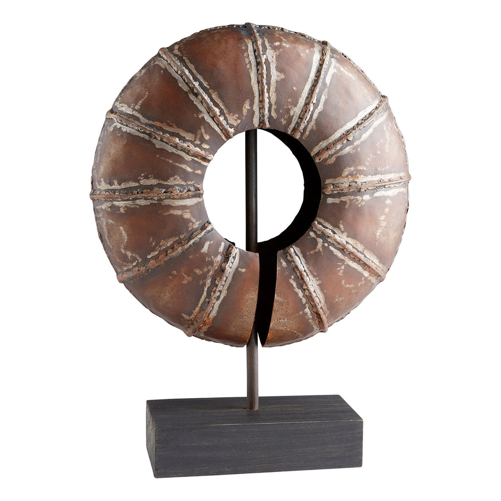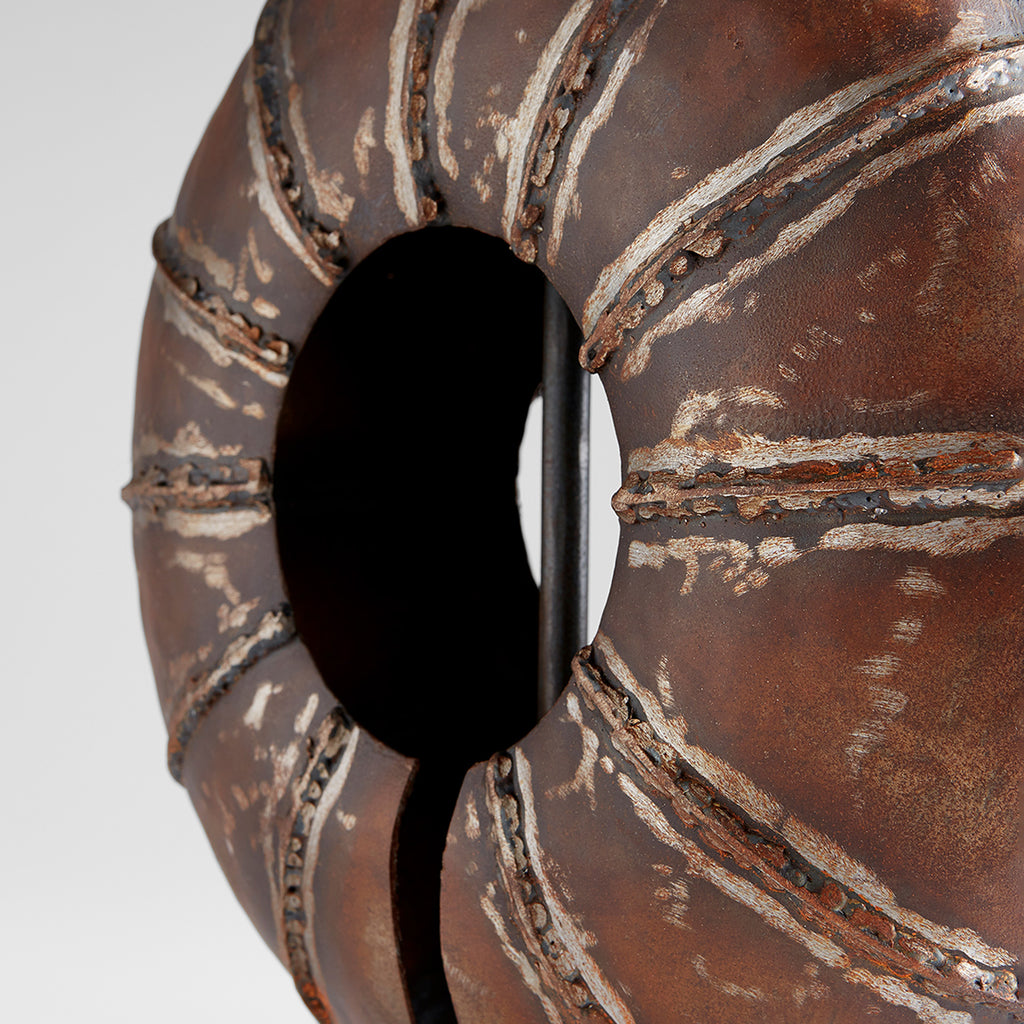 The Cyan Design Animas sculpture is an excellent addition to any rustic ranch aesthetic or modern farmhouse décor. The rounded form coated in a rustic bronze finish sports carefully spaced ridges surrounding the sculpture's exterior to create this impressive abstract sculpture. Balanced on two iron legs that meet at the rectangular base, this sculpture is fit for any office desk, living room coffee table, or kitchen counter surface. Designed for Cyan Design by J. Kent Martin.
