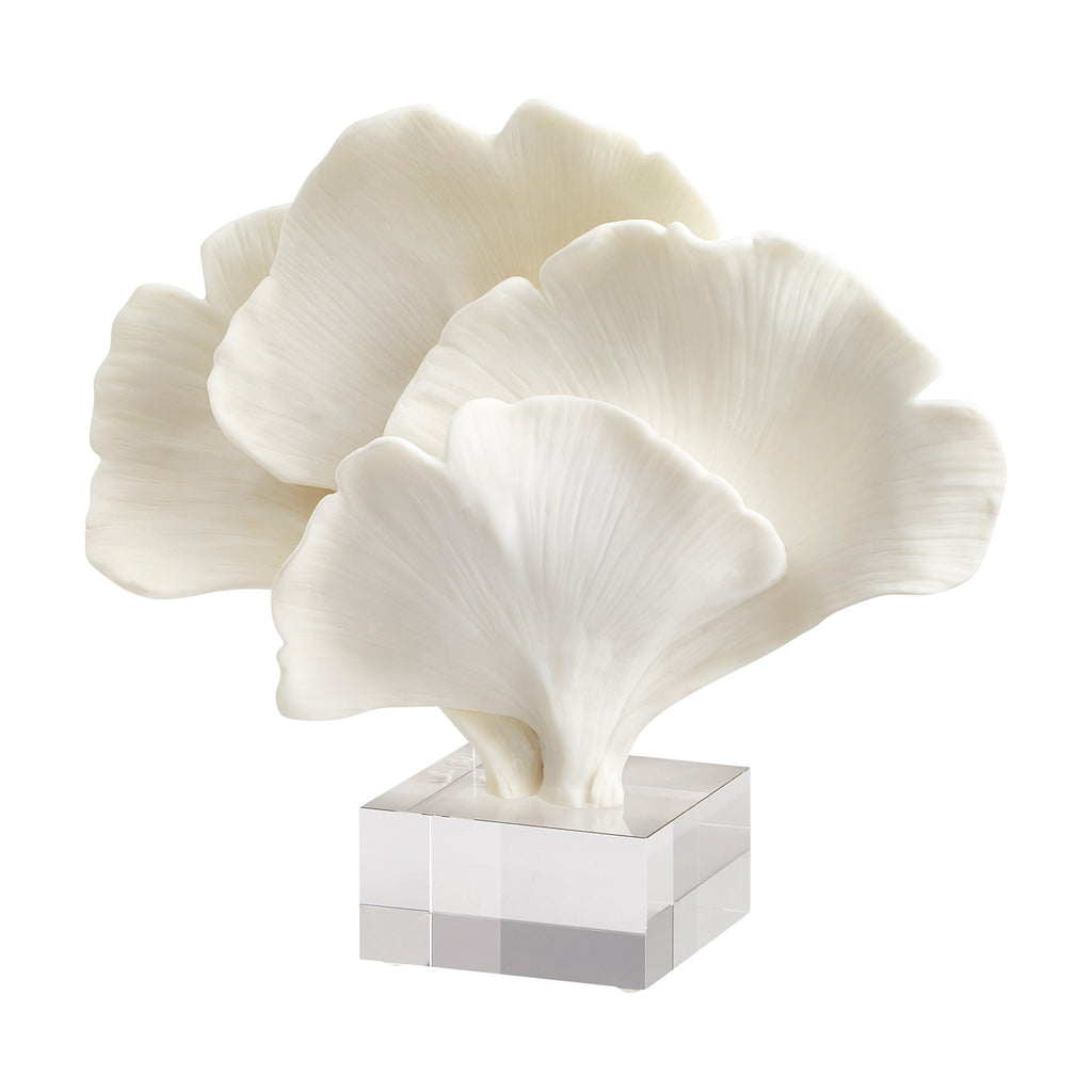 The Cyan Design Pleasant Palm tabletop accent piece is the perfect complement to any modern ensemble. A design centered around an abstracted, blooming shrub, the Pleasant Palm sculpture is comprised of white resin leaves sprouting from a clear, crystal cubed vase. Perfect for any coastal themed space, or contemporary arrangement.