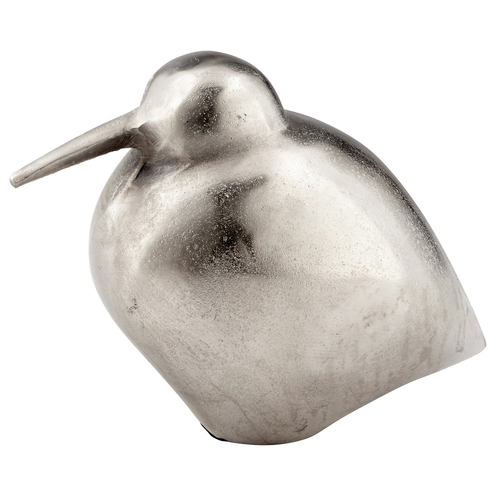 This kiwi inspired large bird sculpture is ideal for an international outdoors influenced decor. A raw nickel finish reveals a light cross hatch texture reminiscent of small feathers..