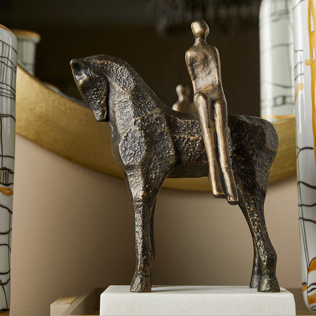 Inspired by the legend of Lady Godiva, an Anglo-Saxon noblewoman, who rode naked through the streets of Coventry, England, covered only by her flowing hair, to gain a remission of the oppressive taxation that her husband imposed on his tenants. Handcrafted by local artisans from cast aluminum and finished in antique brass, the Godiva sculpture represents an unyielding dedication to society and willingness to sacrifice for the greater good.