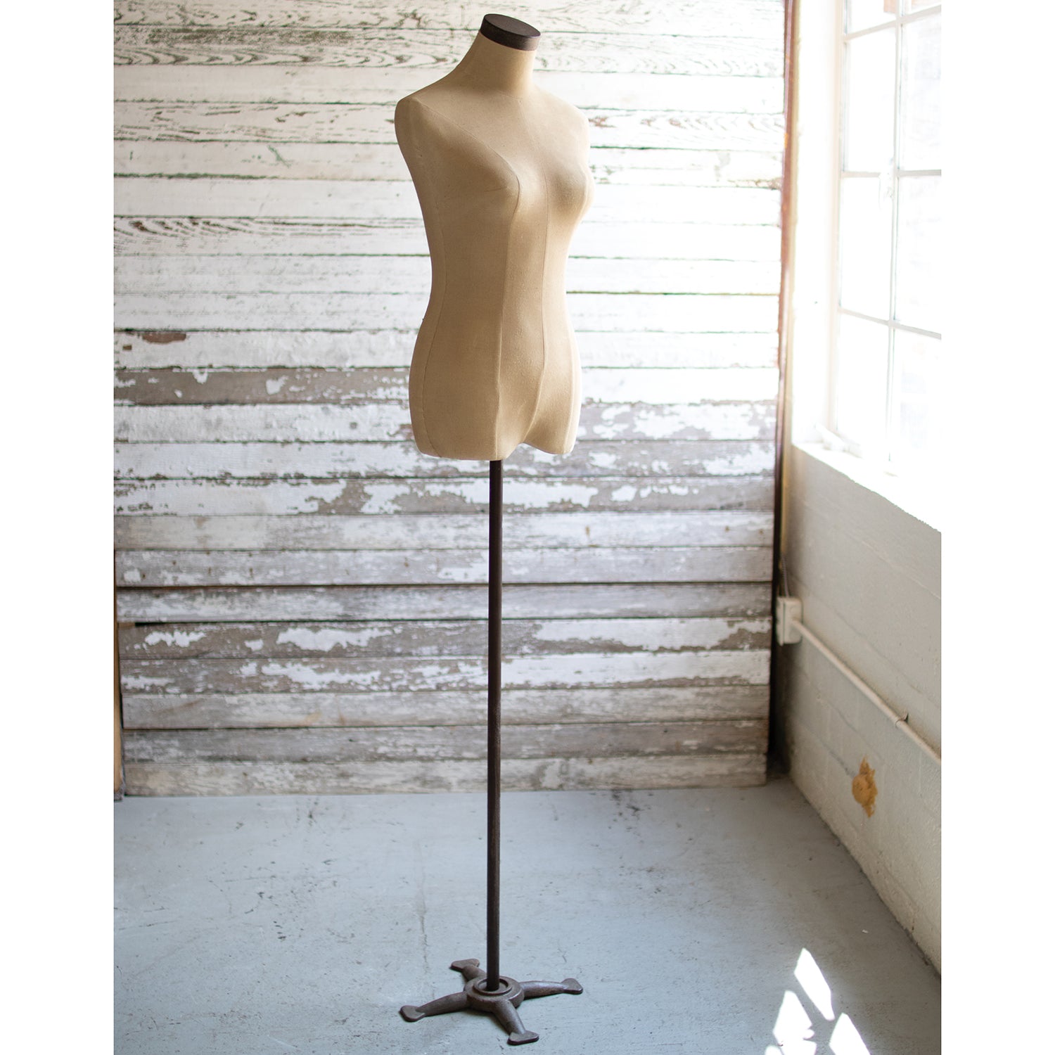 This floor mannequin is perfect for smaller spaces and best for displaying accessories. This does have a 26" waist to display clothing and has 2 holes, one for centering and 1 for off centering.