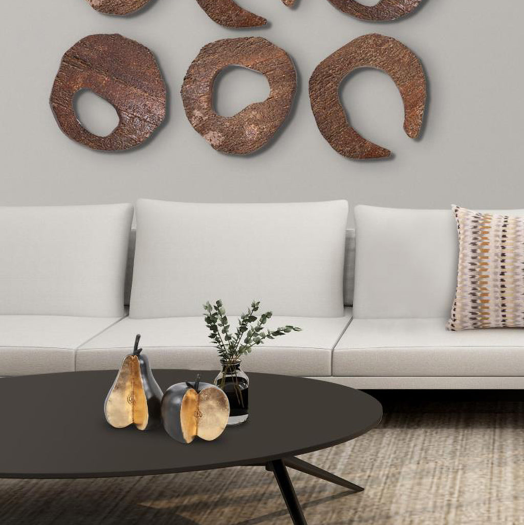 Cast in resin and hand finished, the gilded apple adds a touch of whimsy and charm to traditional and contemporary decor. The matte black outer skin of the apple give way to the gold guiled center. Whether its a single piece or a small grouping in a centerpiece bowl, the Gilded Apple will charm and surprise your house guests.