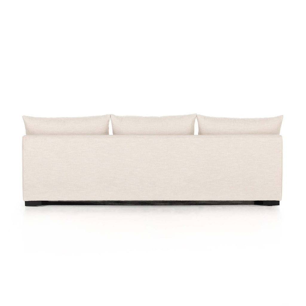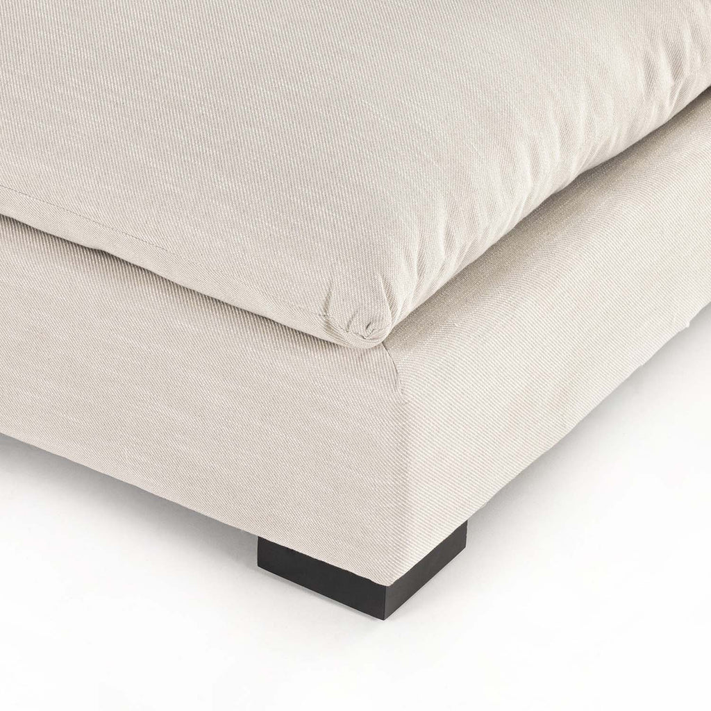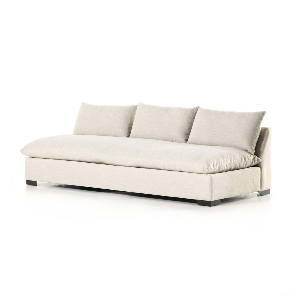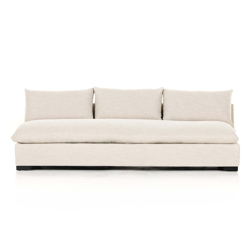 Welcome to the modern lounging essential. An armless three-seater sofa is upholstered in high-performance fabric. Armless sofa to matching sectional. Performance fabrics are specially created to withstand spills, stains, high traffic and wear, ensuring long-term comfort and unmatched durability.