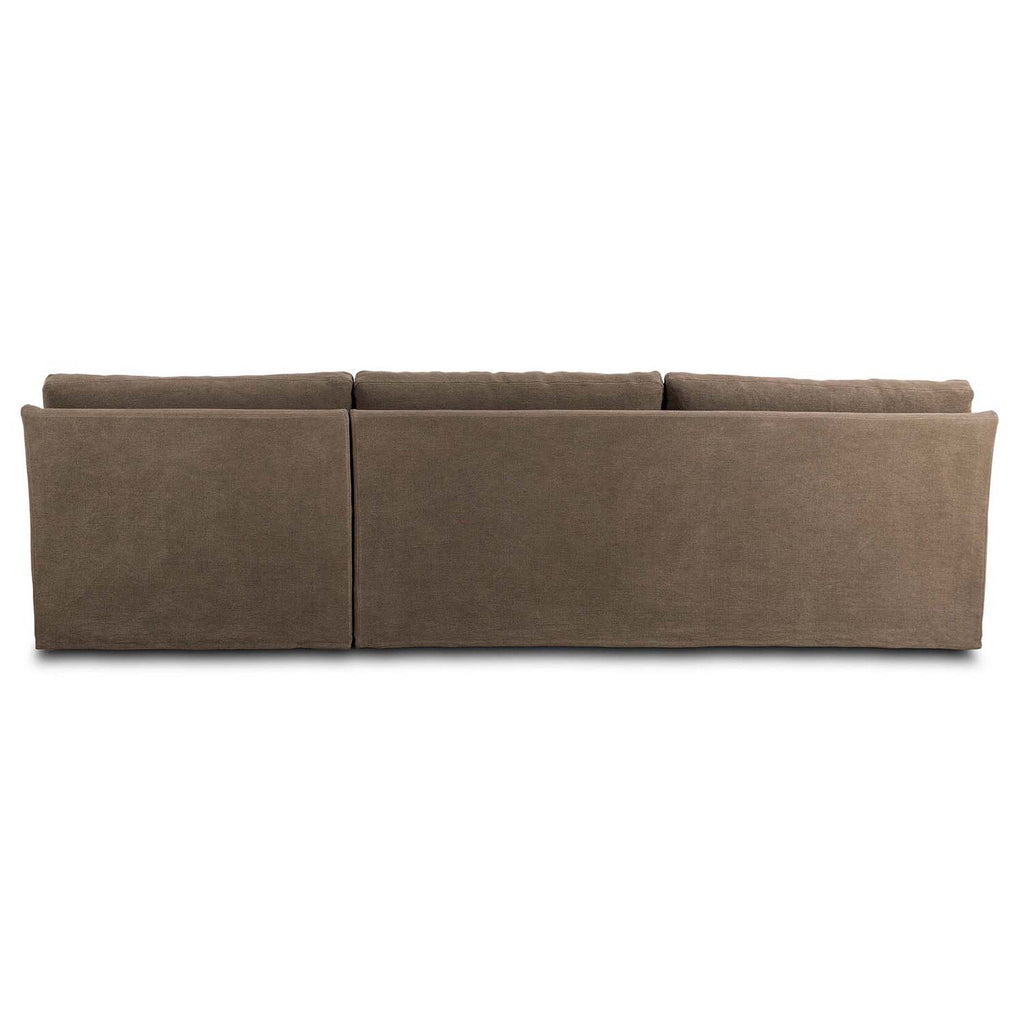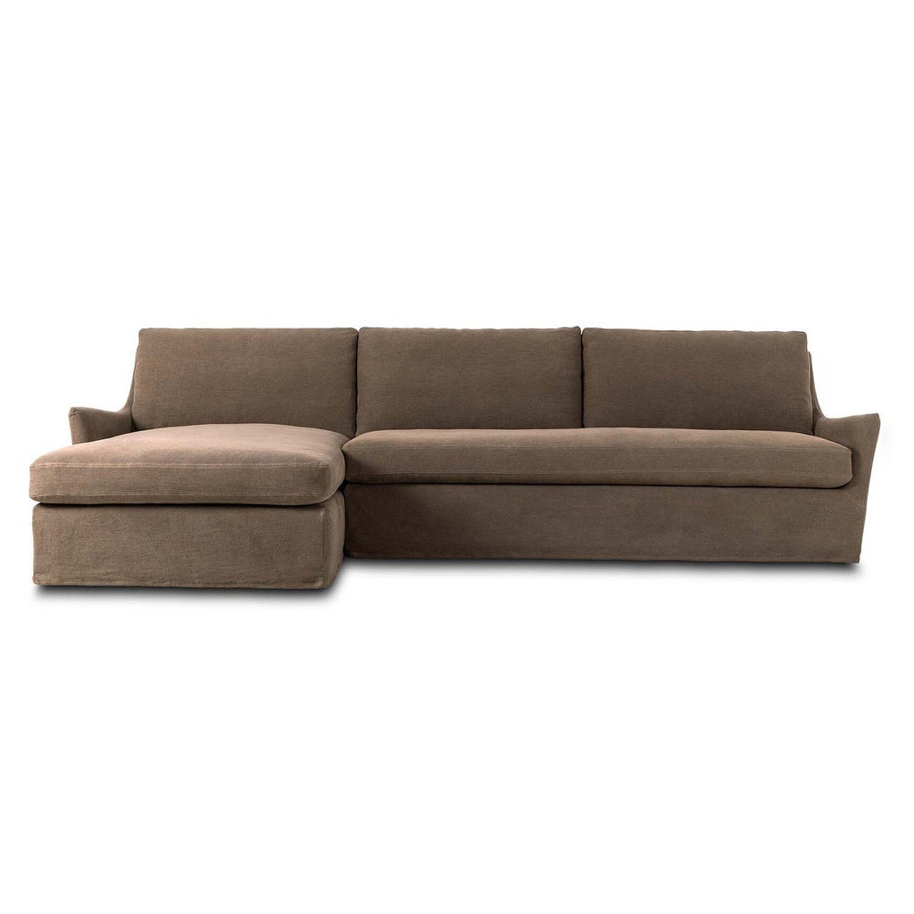 This two-piece sectional is defined by slightly sloping, flared arms and a floor-length slipcover. Finished in a soft, tight weave slipcover for a traditional style. Durable and soft to the touch, Libeco™-sourced linens are artisan-made and free of toxic chemicals. Slipcovered styles are fully removable and machine-washable for easy care.