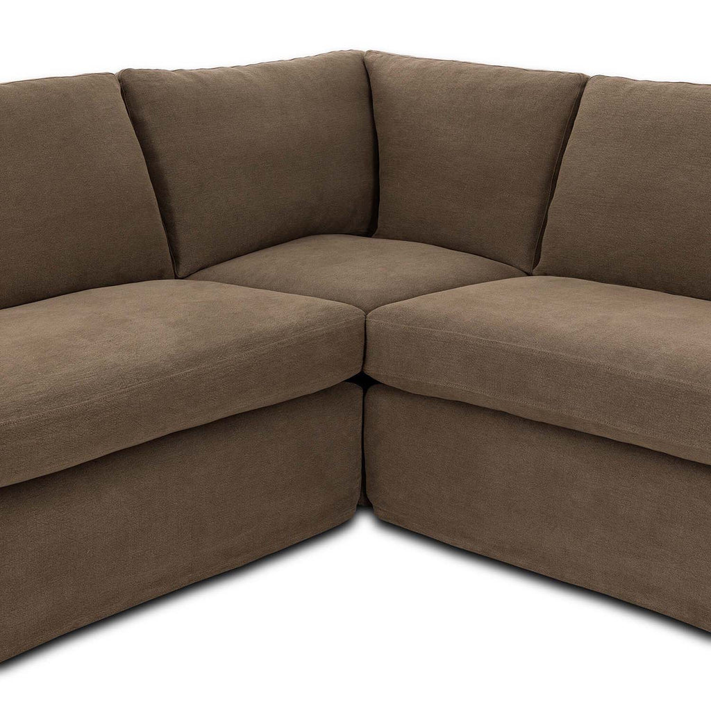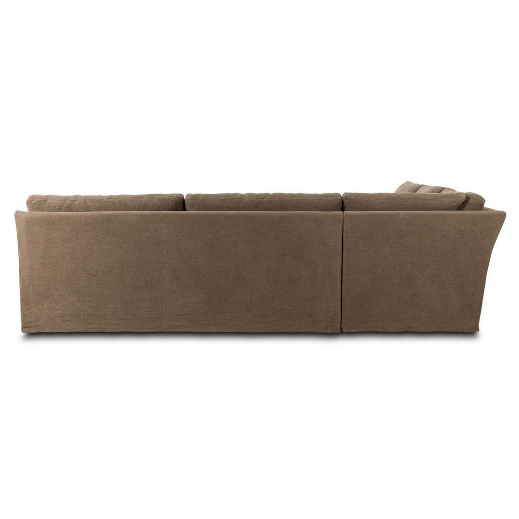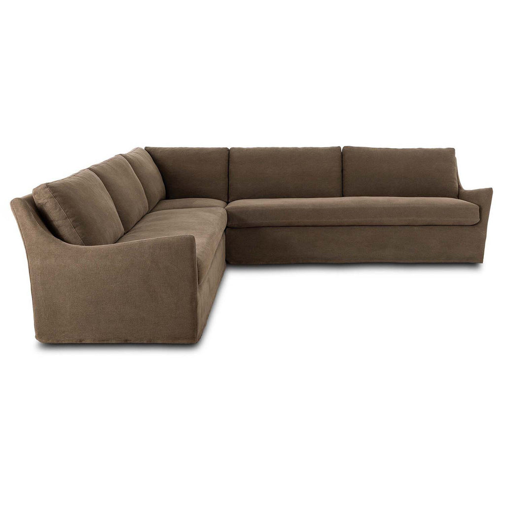 This three-piece sectional is defined by slightly sloping, flared arms and a floor-length slipcover. Finished in a soft, tight weave slipcover for a traditional style. Durable and soft to the touch, Libeco™-sourced linens are artisan-made and free of toxic chemicals. Slipcovered styles are fully removable and machine-washable for easy care.