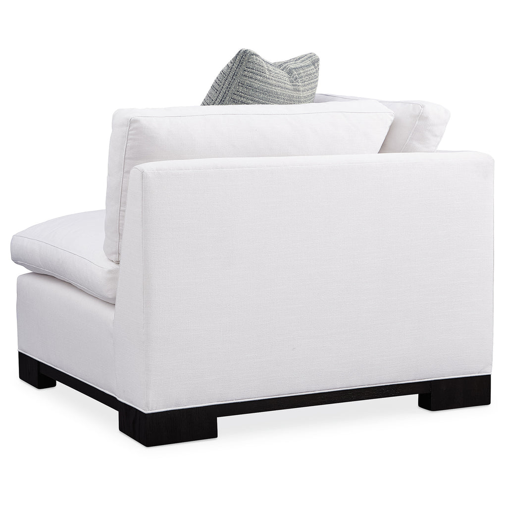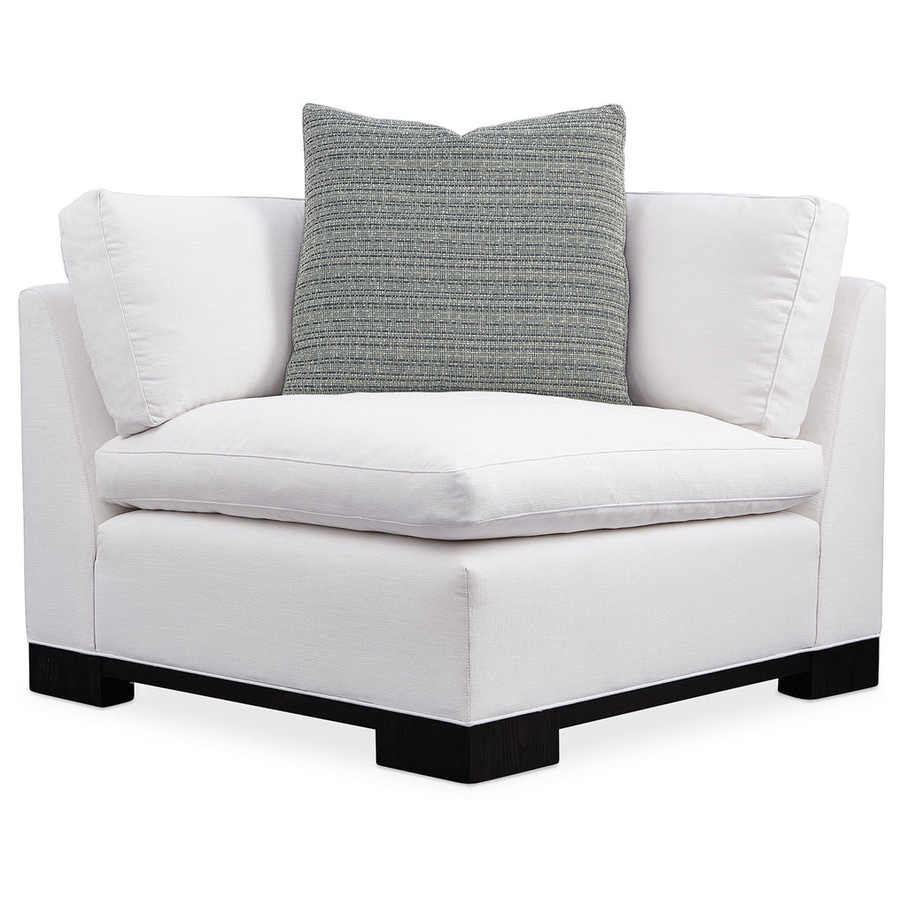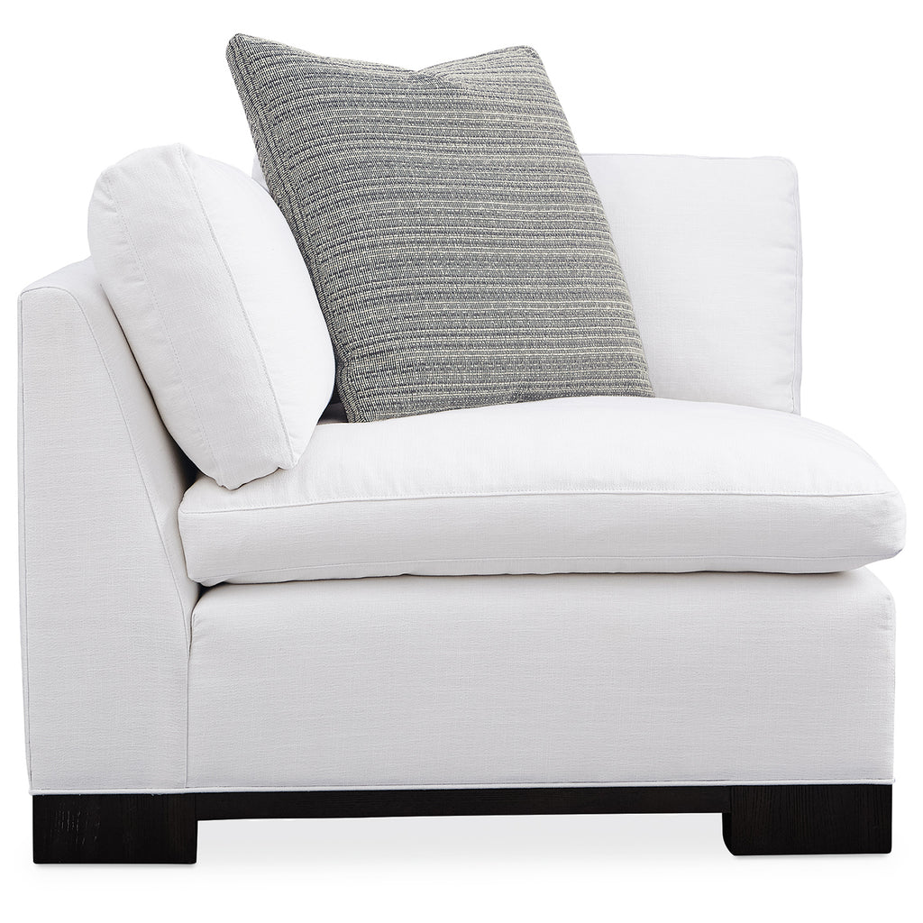 Designed for comfort and a crowd, everyone is a fan of the Refresh sectional. At once bold and timeless, its plush design illustrates the exceptional result of when fashion and comfort converge. Its refreshing styling is equally cozy and rewarding to relax into. Just sit back and you’ll appreciate the surprisingly lush support of its low, deep design and thin, pillow-topped cushions filled with luxurious down-blend cushioning. A luxurious fabric cover and block feet finished in Midnight Terrain add a finishing touch. Designed to surround you in stylish comfort, this configurable seating option offers the perfect mix of form and function.