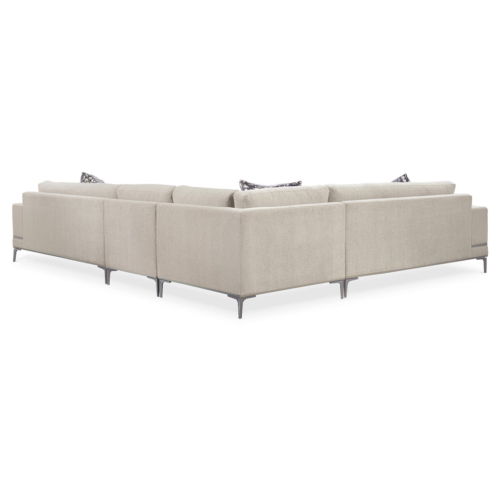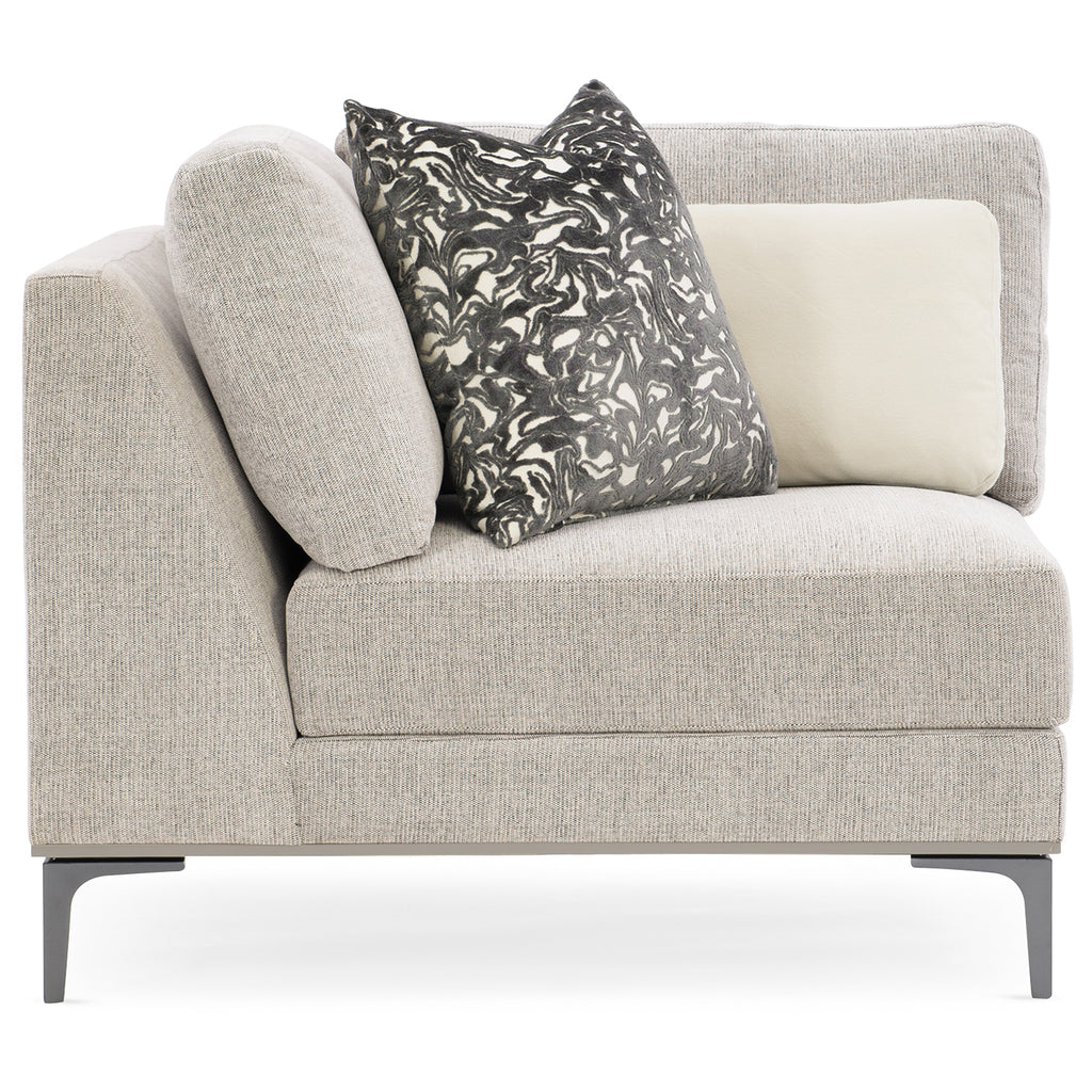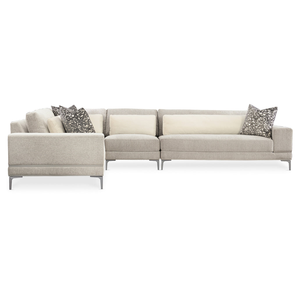 The clean lines and smart angles of a Repetition modular sofa create a stylish sectional solution for modern seating. Long uninterrupted planes of finely tailored upholstered cushions create a sumptuous retreat with true simplicity of form. Repetition’s frame is finished in London Fog while its metal legs wear Zinc Oxide, adding additional layers of luxe to its refined palette. Ultimately configurable, this stunning seating solution can be arranged to fit your space while reflecting your unique design perspective.