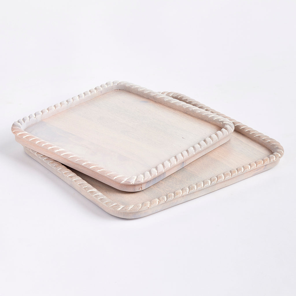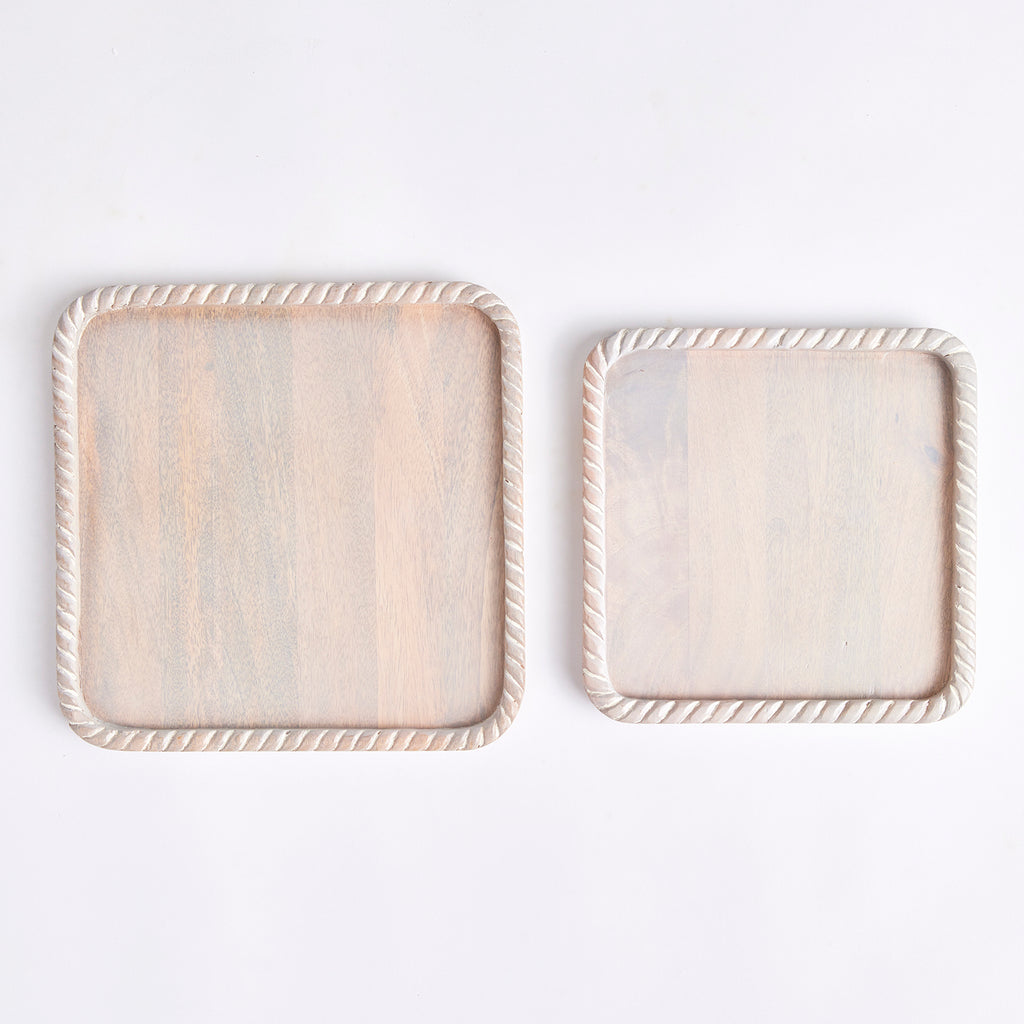 Hand carved from mango wood, this pair of trays is a sweet little accent for baked goods or a cheese tray. A little touch of natural wood tone is always on trend.