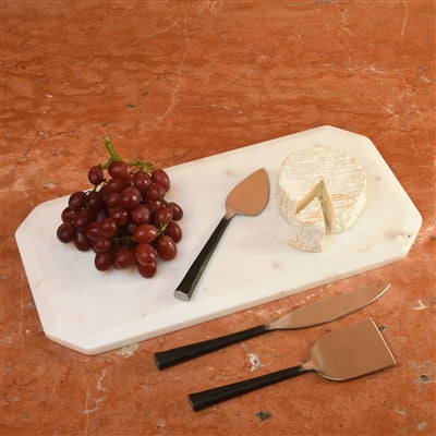 Polished stainless steel tools with matte black zinc handles create a sleek and refined trio to serve up both firm and soft cheeses.