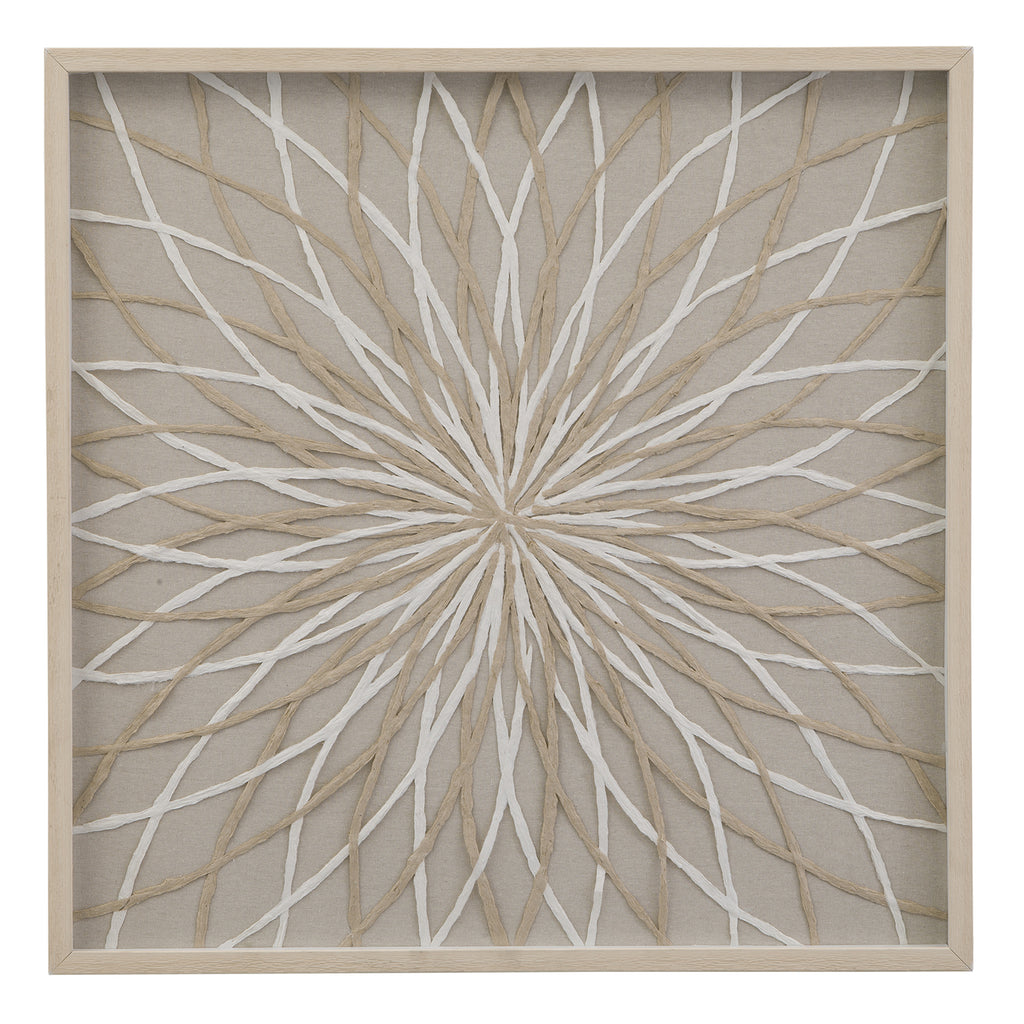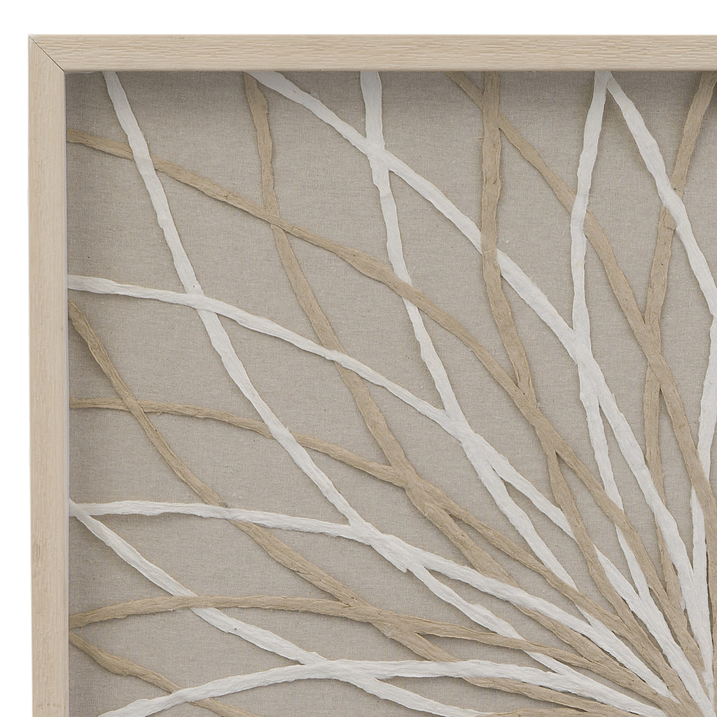 Bengaline Wall Art is uniquely crafted piece of art featuring woven natural materials framed in a shadow box under glass in a natural wood frame.