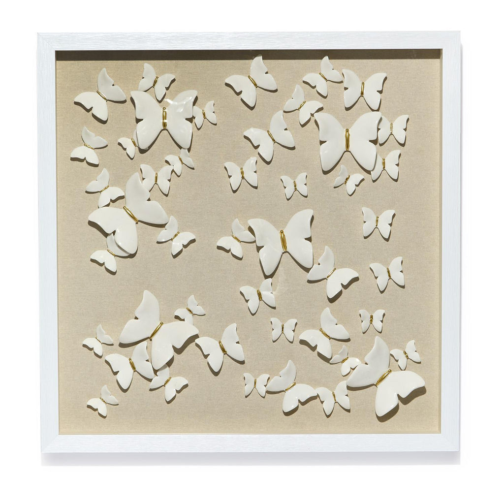 Transform any room into a serene garden with our Butterflies in Bloom Shadow Box Wall Art. Delicately crafted from porcelain, this exquisite piece features lifelike butterflies captured in a shadow box, adding depth and charm to your space. The intricate details and handcrafted feel make this wall art a standout piece in any home.