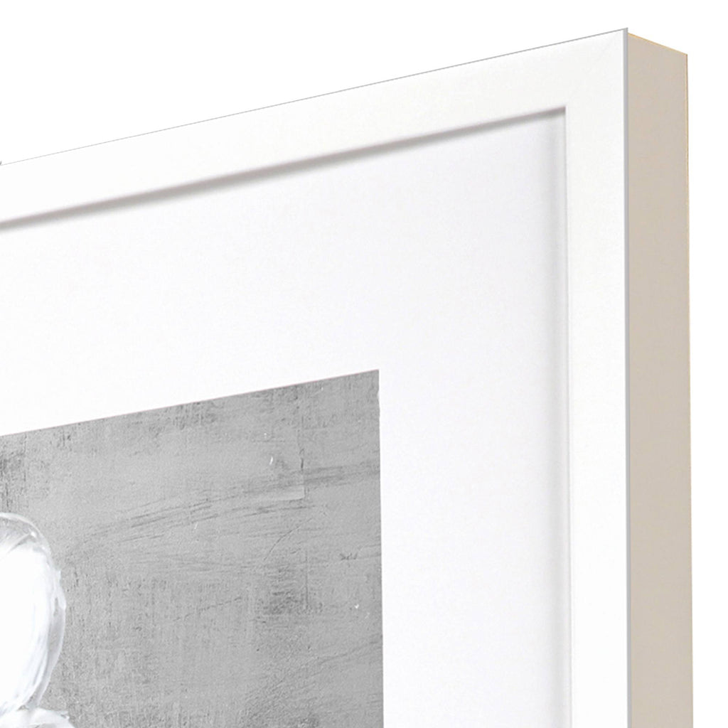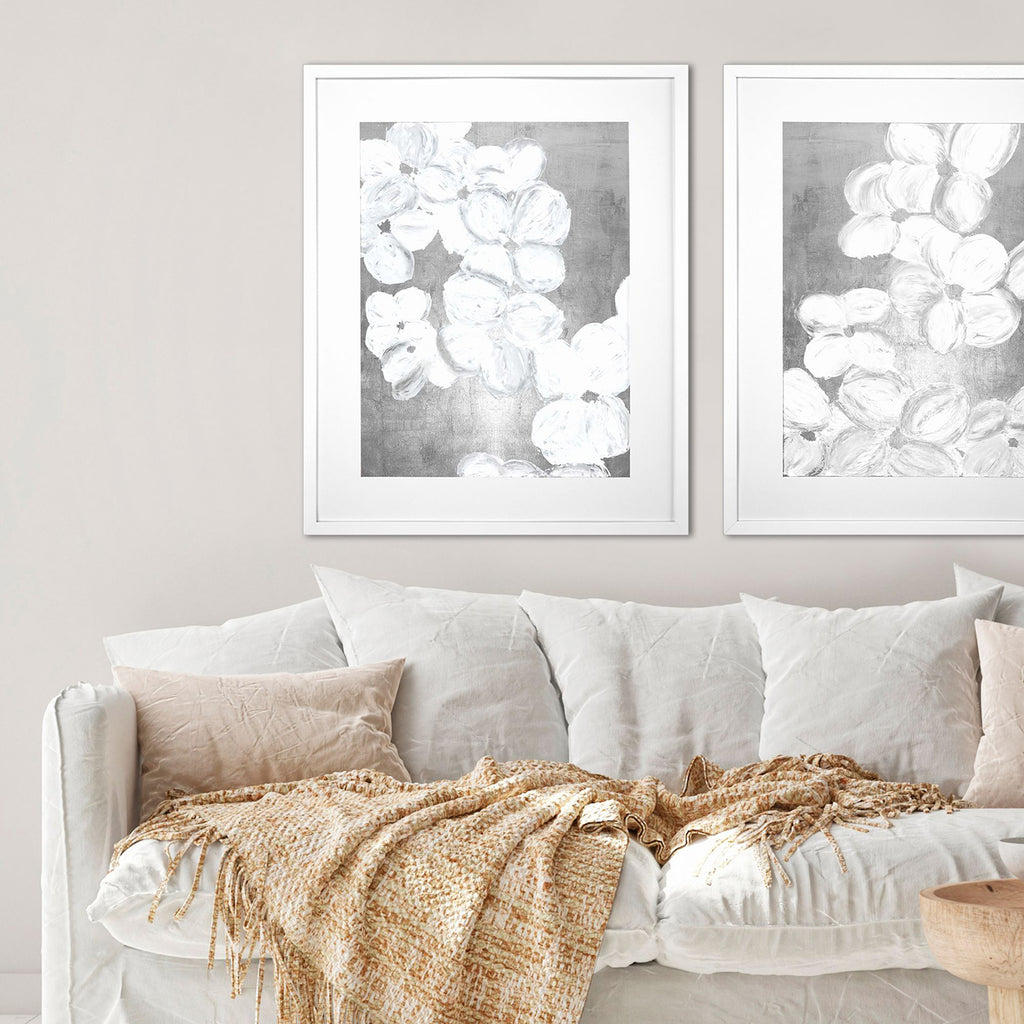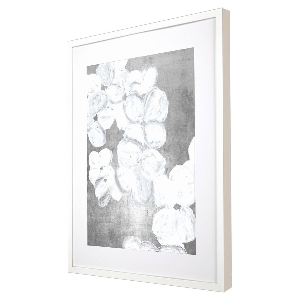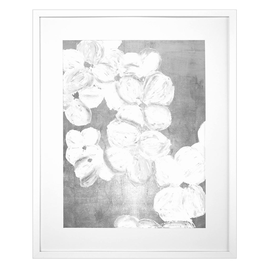 Hand embellished giclee with silver leaf. Framed in a lacquered white wood shadow box style moulding.