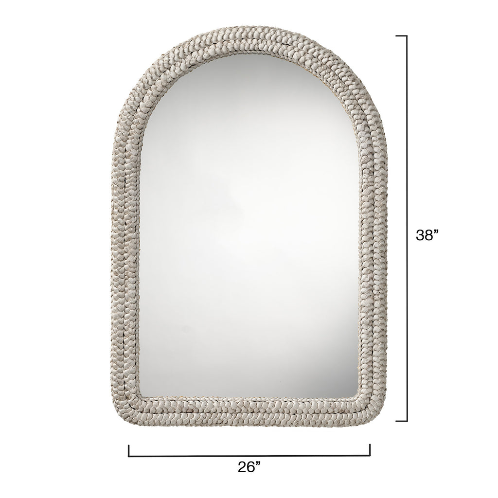 Elegantly wrapped with two rows of braided corn husk, this arched mirror adds a touch of lightness to any casually refined décor. The unfinished husk showcases a variety of natural colors, introducing unexpected depth to its neutral palette. The result is a beautifully refined tropical accent that is simply lovely.