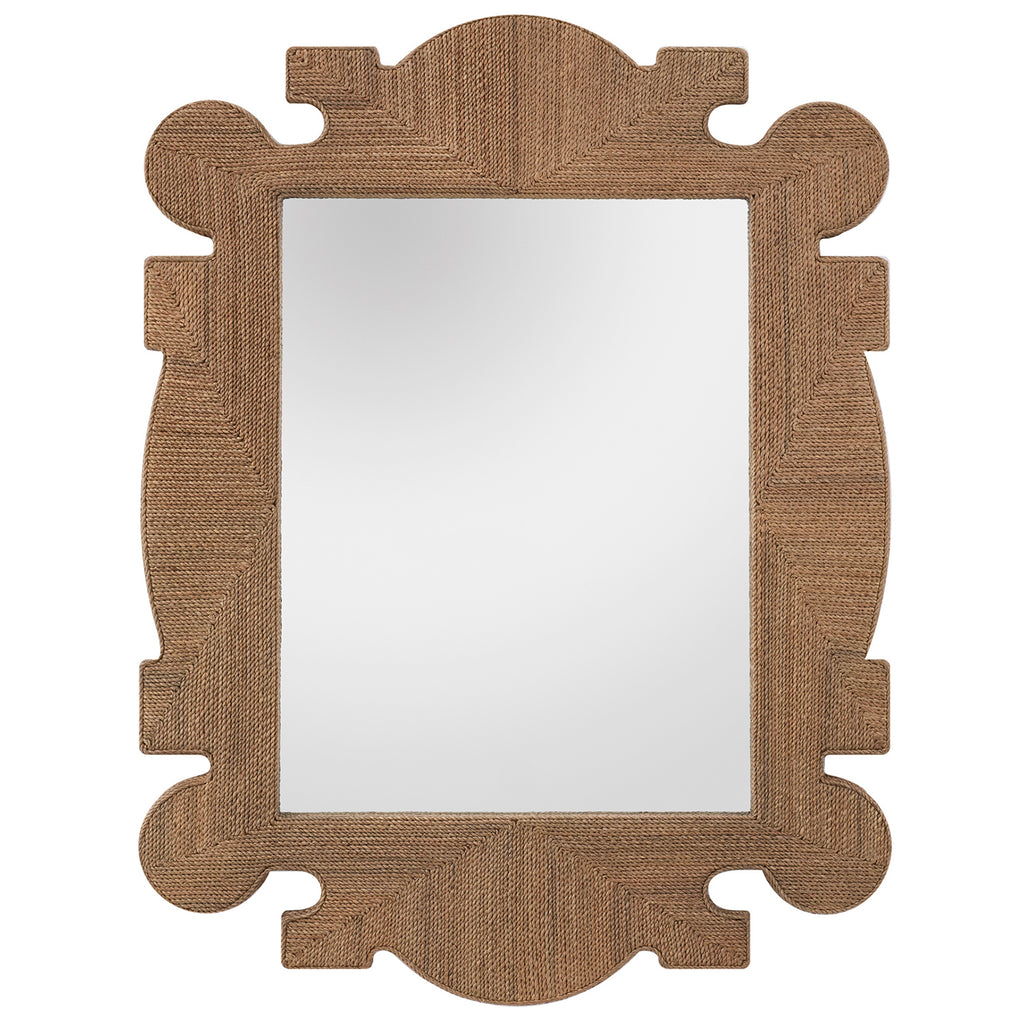 Rich textures and lines come together to form the unique sophistication of this wall mirror. The ornate frame shape is inspired by maximalist style, while its natural hues and modern aesthetic allow this mirror to work in any space. The frame is wrapped in tobacco-stained abaca, known for its durable fibers. Security cleat hanging hardware to hang both vertically and horizontally. Finish will vary.