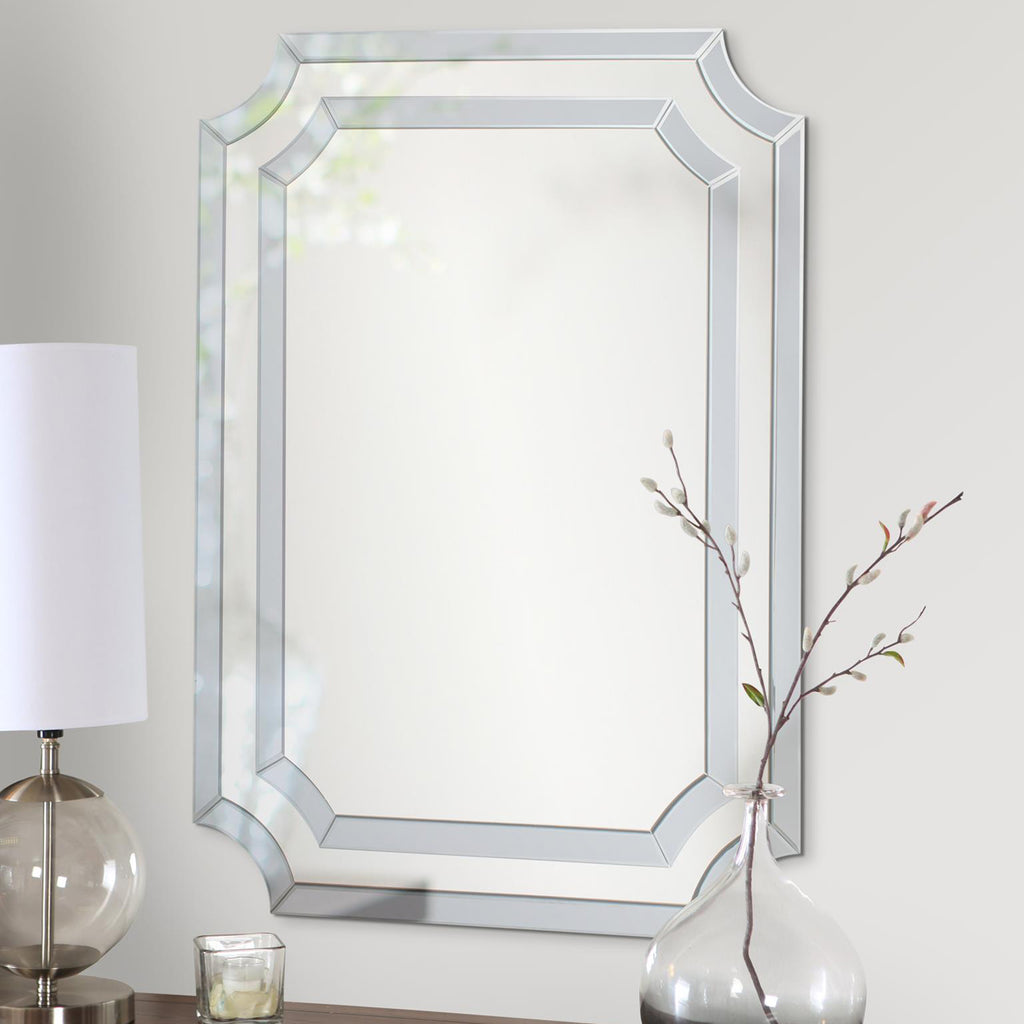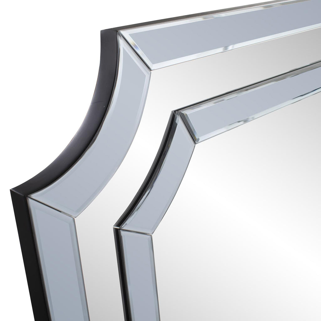 The Ralston mirror, with it's double gray mirrored border, accentuates the classic timeless design. The curved lines of the scalloped corners paired with the slight beveling gives this design a definite air of elegance. The Ralston would be the perfect accent to a master bath or entry foyer of a contemporary to traditional styled home.