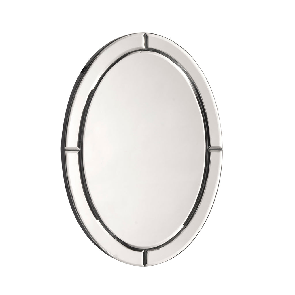 The Opal Mirror is a simple yet lovely piece featuring an oval shape with a mirrored frame. Each section of the frame and mirror glass has a small bevel. The piece includes hanging hardware so that the piece can be hung vertically or horizontally. Hang multiples together for a truly striking wall display. Think outside the box! The Opal Mirror also works great as a table accent! Simply remove the hanging hardware, set it on a table and adorned with candles, or any other decor item.