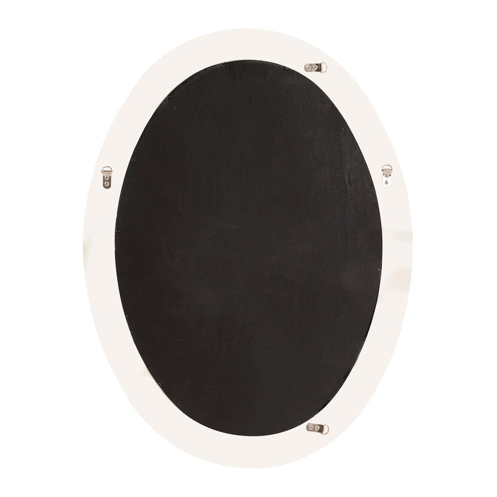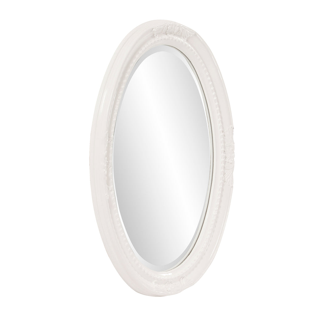 The Queen Ann Mirror features a glossy white lacquer finish. The oval frame is made from wood and is accented with a beaded textured inset and decorative adornments on each side of the frame. For more added detail the mirror features a one inch bevel. Its Traditional style makes this mirror a favorite for bringing some flair to your decor. This simple yet stunning piece would be a great addition to any room. It is a perfect focal point for an entryway, bathroom, bedroom or any room in your home. D-rings are affixed to the back of the mirror so it is ready to hang right out of the box in either a horizontal or vertical orientation!