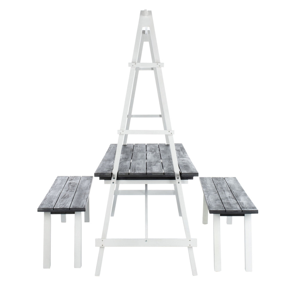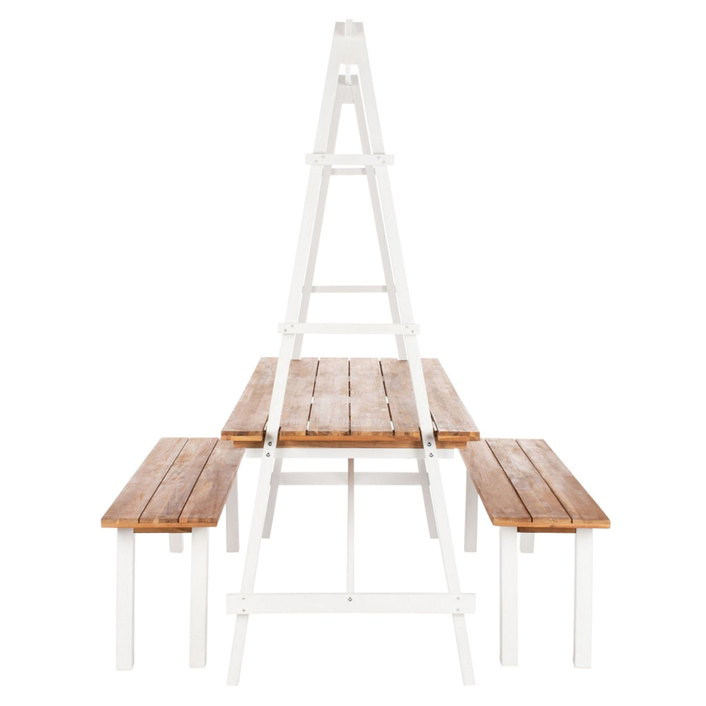 The Ventnor 3-piece Dining Set lends a decorative look and fabulously functional outdoor pieces to the backyard picnic. Made from naturally beautiful acacia wood with a trellis-framed table and two benches, Ventnor's distinctive look will be the reason for having many new, and envious, friends and neighbors.