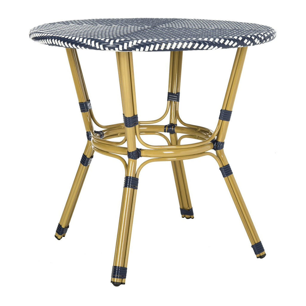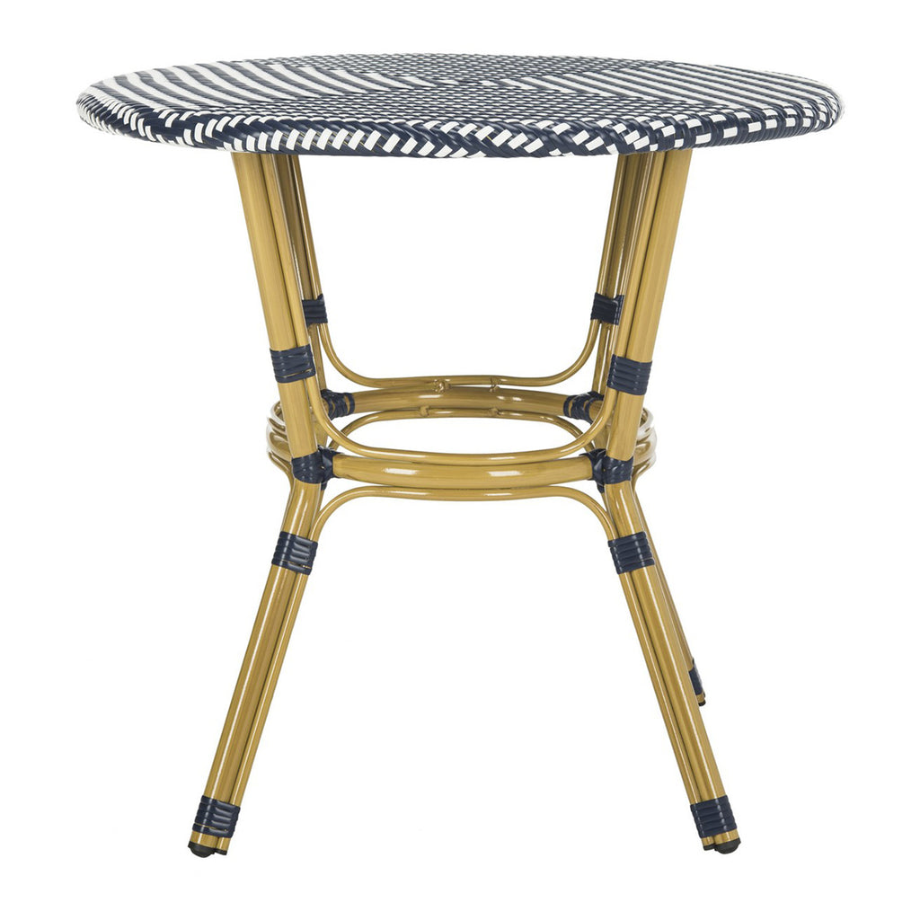 Embrace your inner Parisian with this traditional rattan bistro side table. Crafted to honor the classic French design, its Navy & White or Gray & White pattern is paired with Dark Brown wicker for timeless style. Ideal for the kitchen, deck or casual dining room.