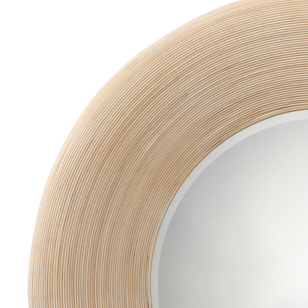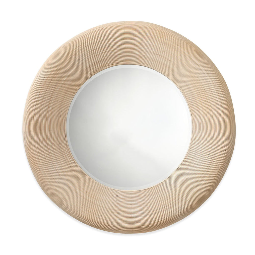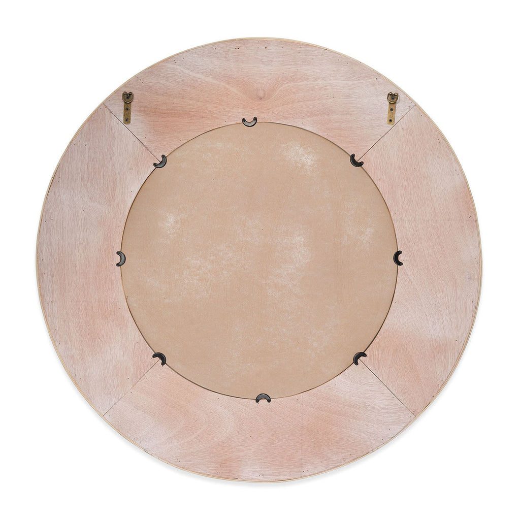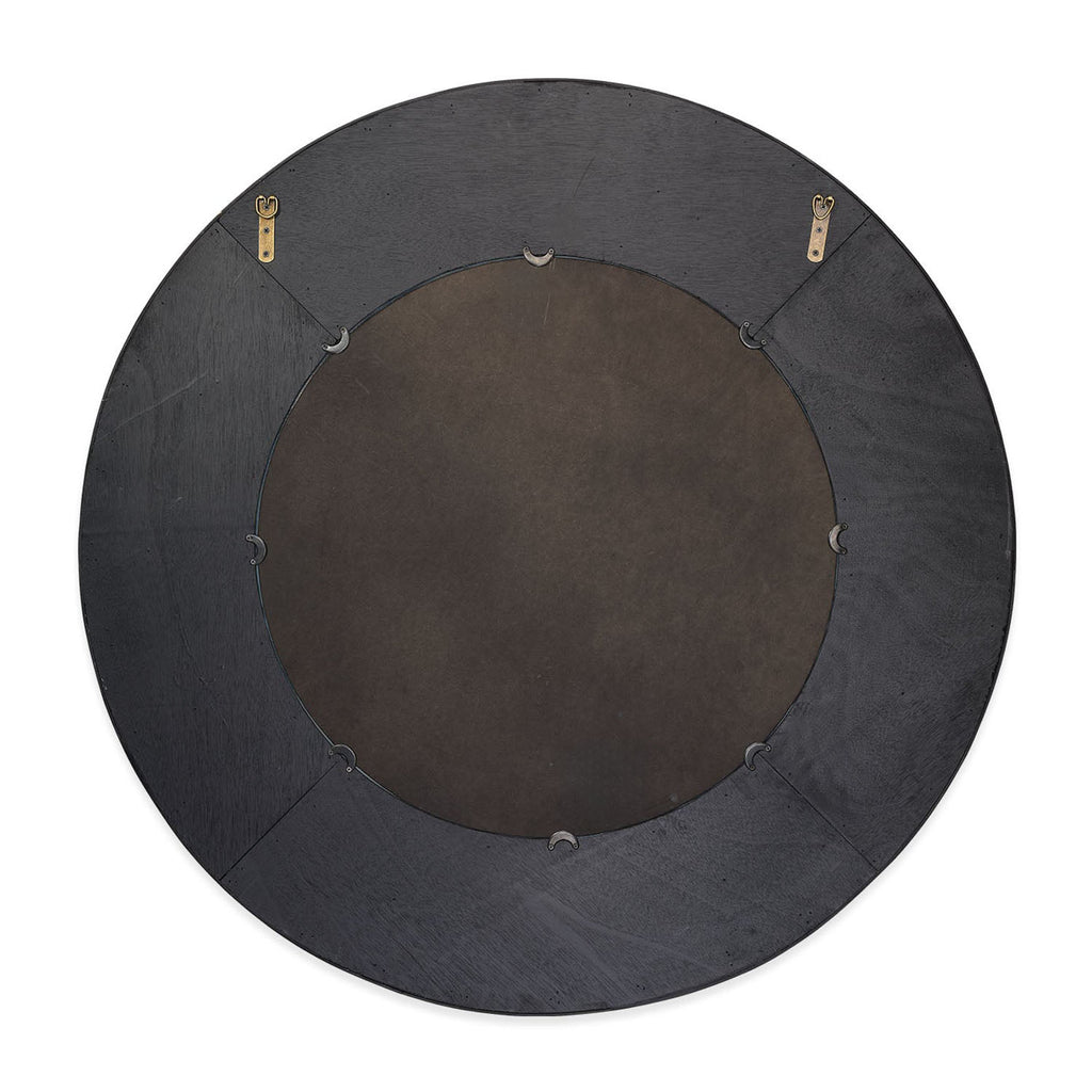 The simple circular lines of this wood mirror are beautifully enhanced by linear textural elements. Artisan-crafted from bamboo, its monochromatic finish makes it an easy addition to any wall display. Place it by the door for a quick fit check on your way out, or in an entryway for a welcoming touch of light.