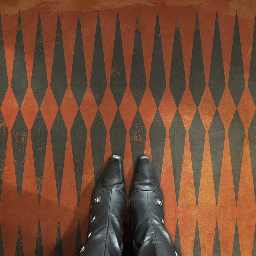 The Venom vinyl floor cloth from the Pattern 08 collection was inspired by vintage linoleum. Perfect for kitchens, baths, screened in porches and patios, the durable vinyl floorcloths are easy to clean and always lay flat. Vinyl floorcloths are made with two-ply vinyl with latex padded backing, designed to be fade-resistant in direct sunlight and durable against the elements but work best in controlled outdoor environments.