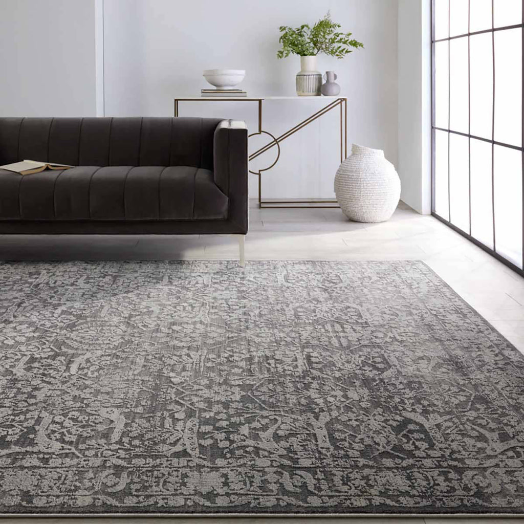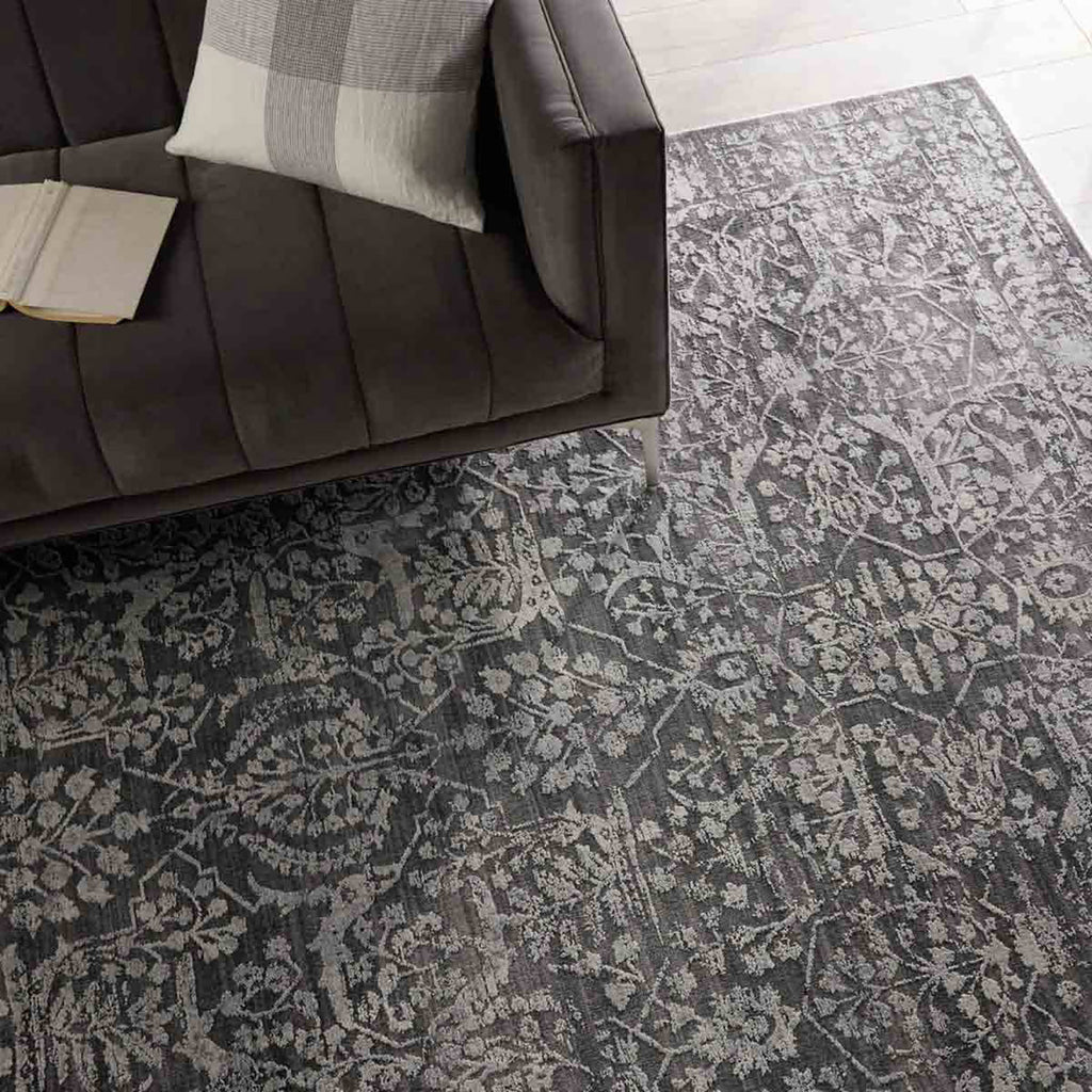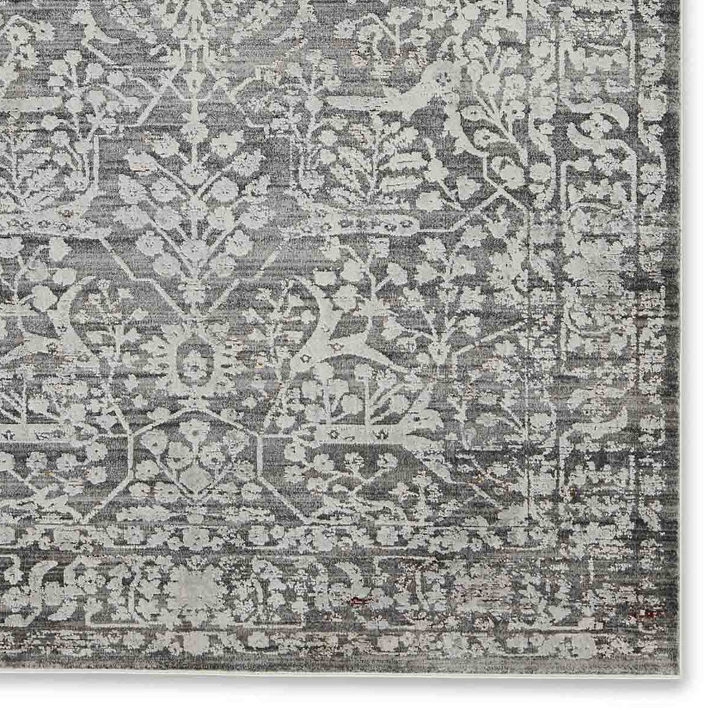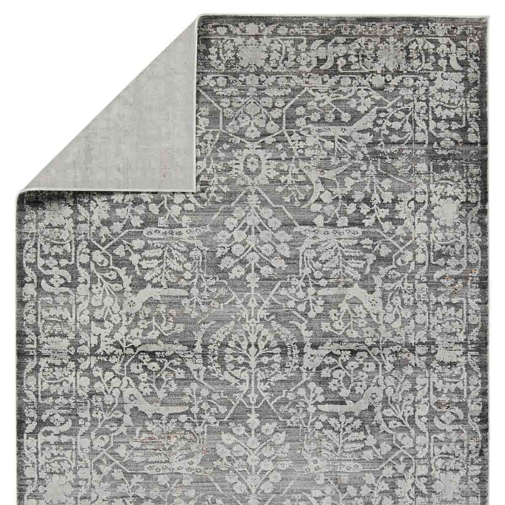 The Jaipur Living Acadia collection features an assortment of both contemporary and timeless designs paired with a sumptuous sheen and irresistible, soft hand. The Elvira area rug depicts a distressed floral pattern in transitional hues of gray, cream, and silver with hints of rust and gold. The high-low pile creates depth and texture that perfects high and low traffic spaces of the home such as bedrooms, living rooms, offices, entryways, and halls.