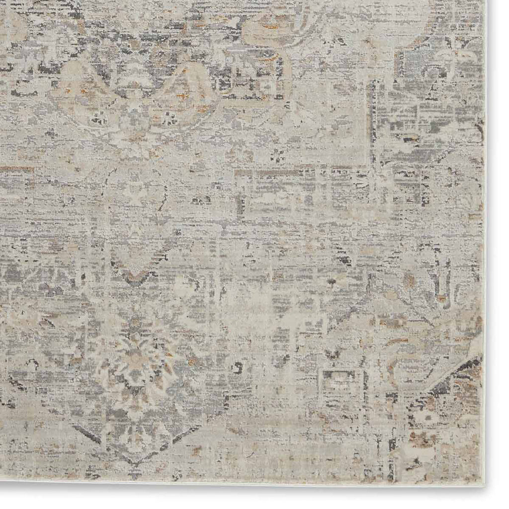 The Jaipur Living Acadia collection features an assortment of both contemporary and timeless designs paired with a sumptuous sheen and irresistible, soft hand. The Elvira area rug depicts a distressed floral pattern in transitional hues of gray, cream, and silver with hints of rust and gold. The high-low pile creates depth and texture that perfects high and low traffic spaces of the home such as bedrooms, living rooms, offices, entryways, and halls.
