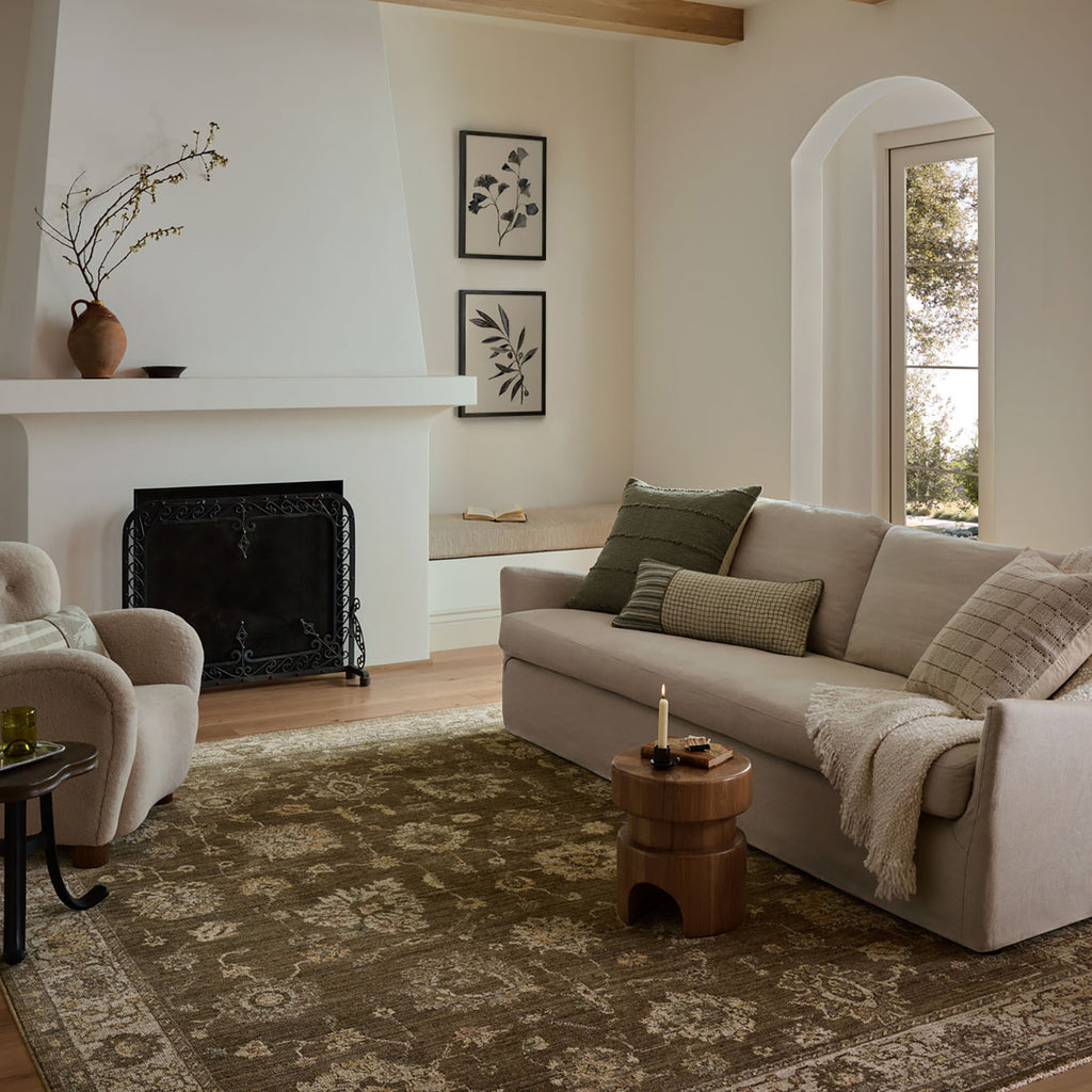The Loloi Priscilla Collection is a classically beautiful area rug with the low, worn-in pile of a treasured vintage textile. The rug’s neutral stone palette uses contrasting tones with moments of distressing and saturation for visual depth that emphasizes the antique aesthetic. This collection is power-loomed of 100% polyester in Turkey, a durable, easy-to-clean construction that never sheds and is well-suited for busy living rooms, bedrooms, entryways, and more.