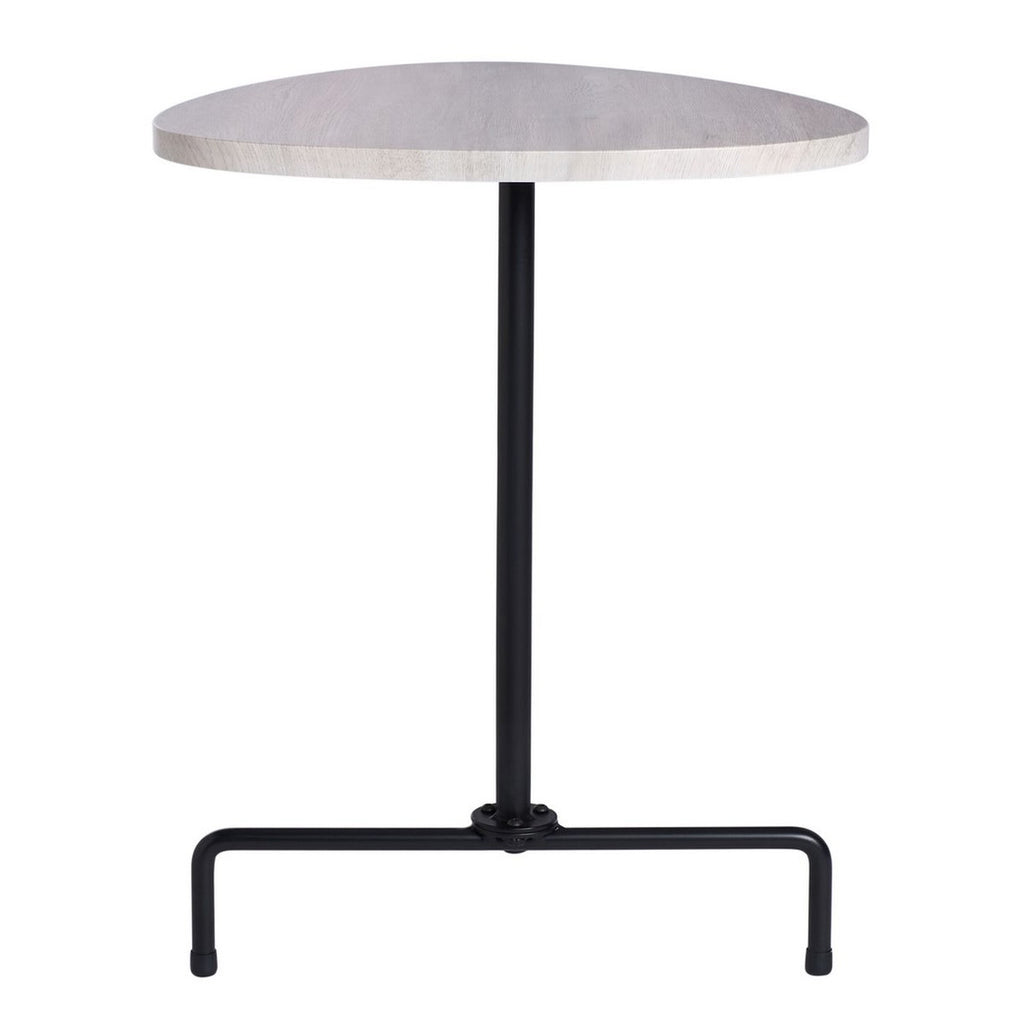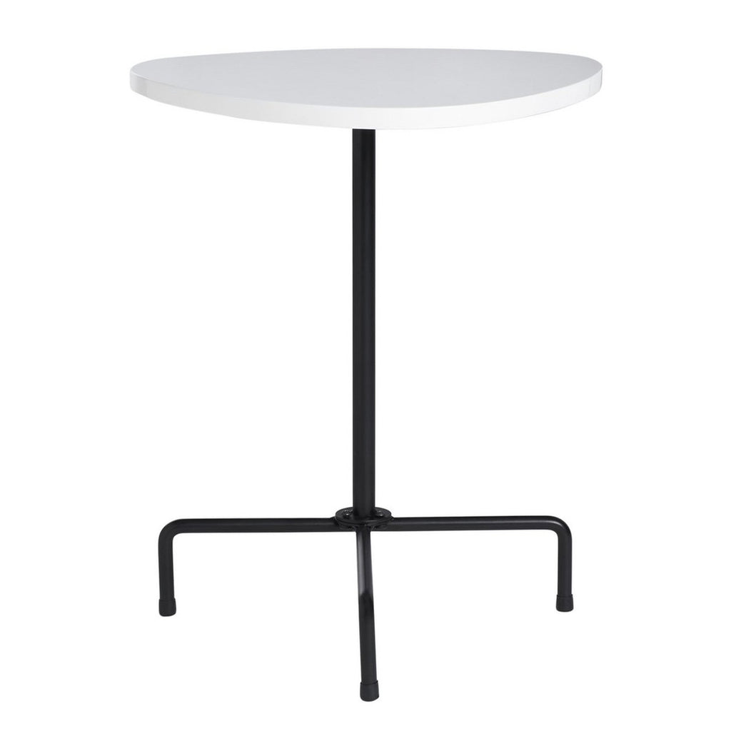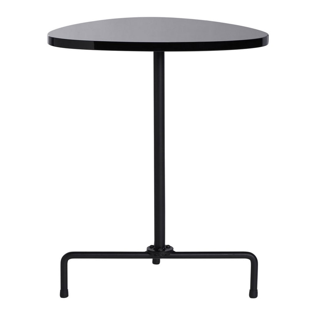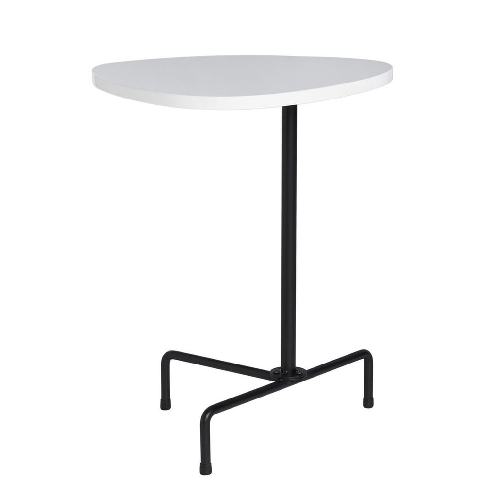 Reviving the timeless style of the Bauhaus art movement, this tripod side table is the picture of fashion forward living. Black tripod legs perfectly balance a sculpted wooden top in a white lacquer, black lacquer finish for a retro mod look sure to make a bold and charismatic statement.