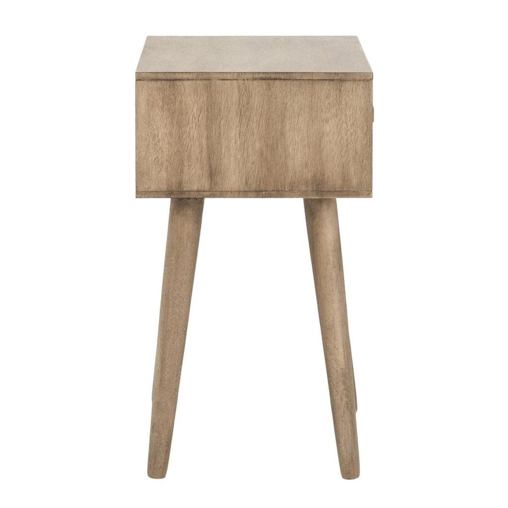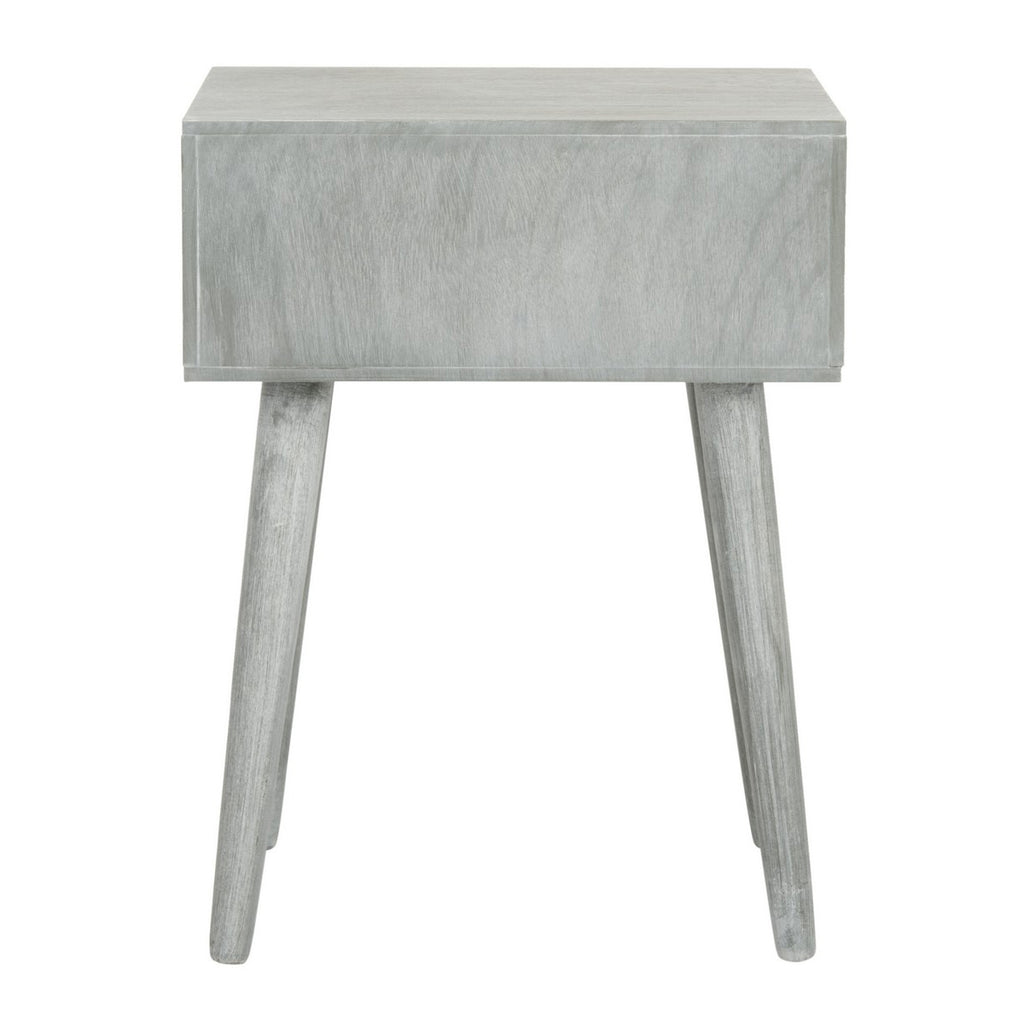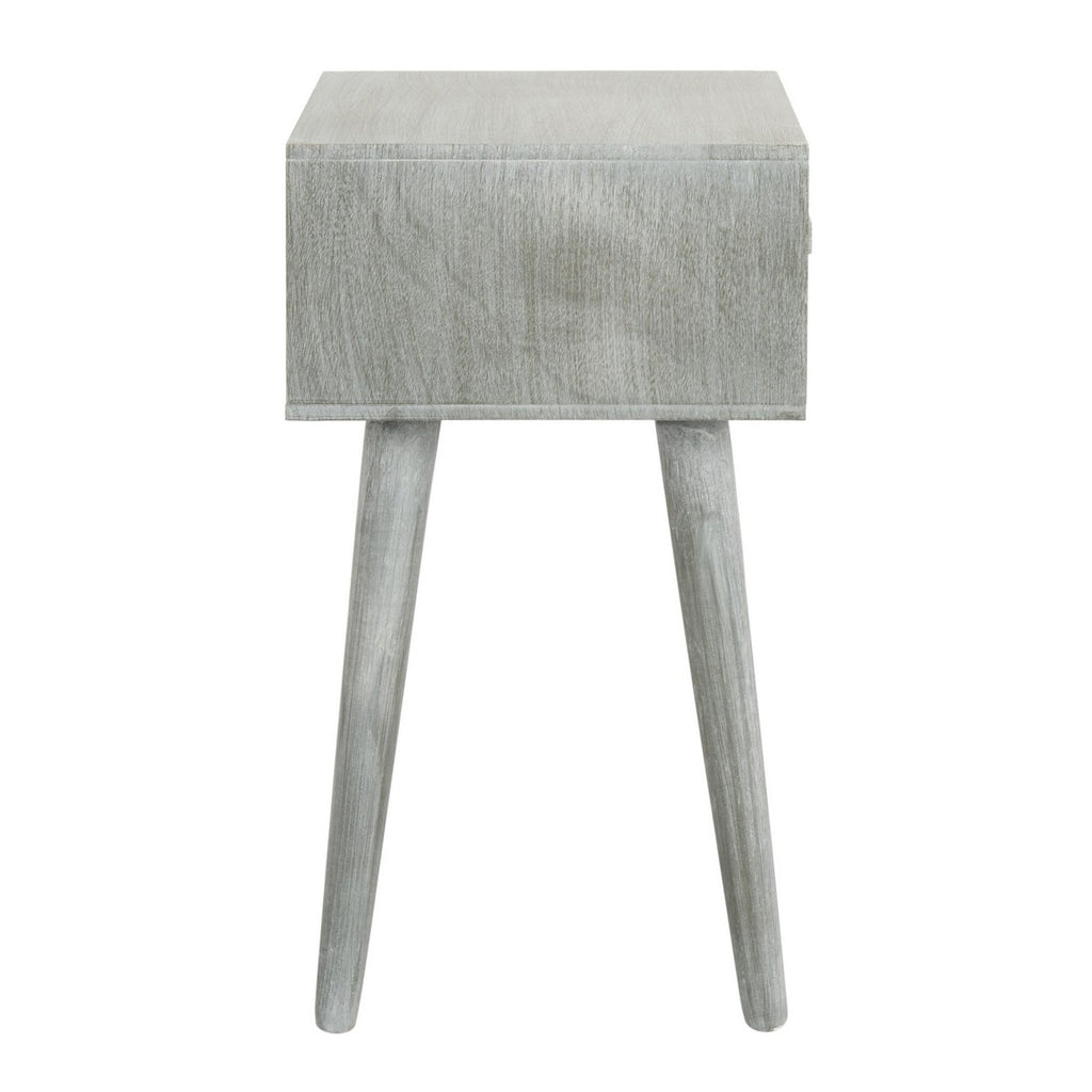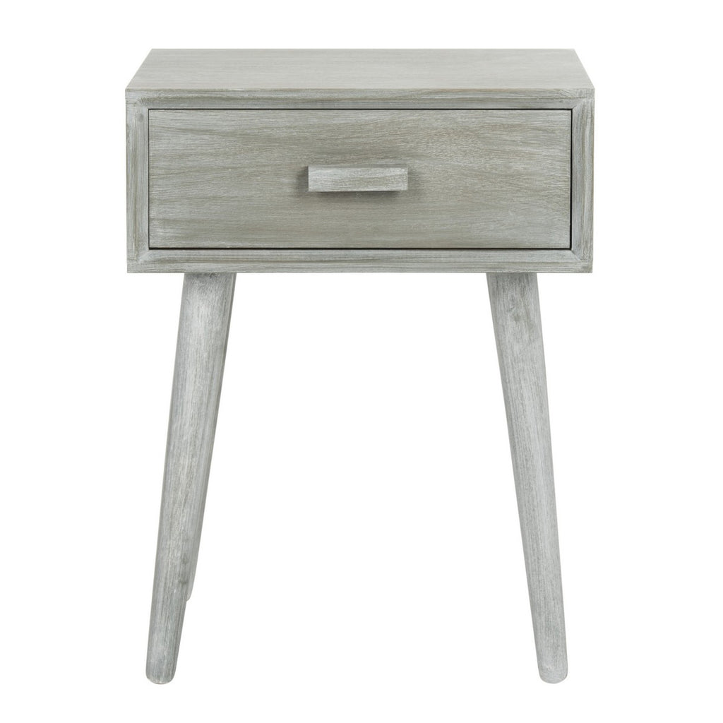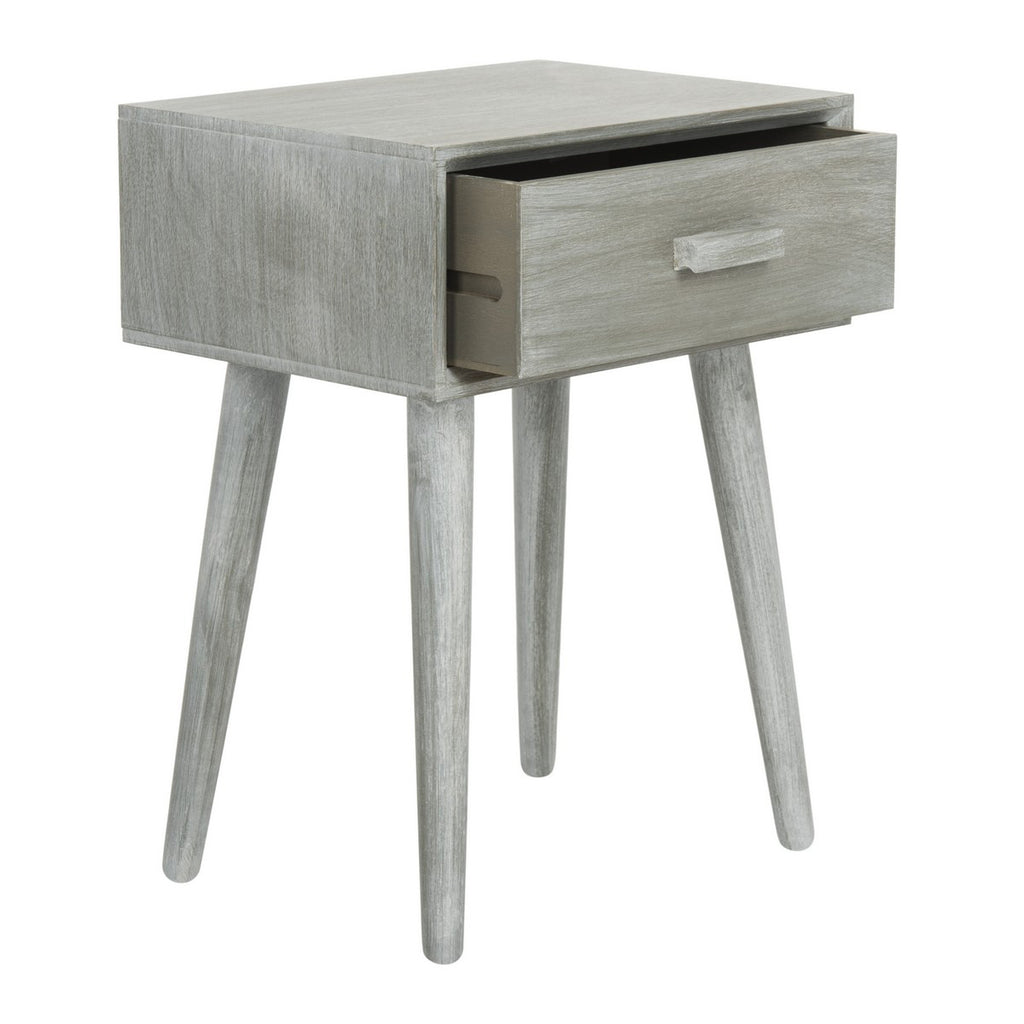 Update any urban oasis with this contemporary accent table. Created with a distressed white water based paint treatment that highlights its pine wood blend construction, its ample storage drawer creates a masterpiece of form and function. A designer favorite.