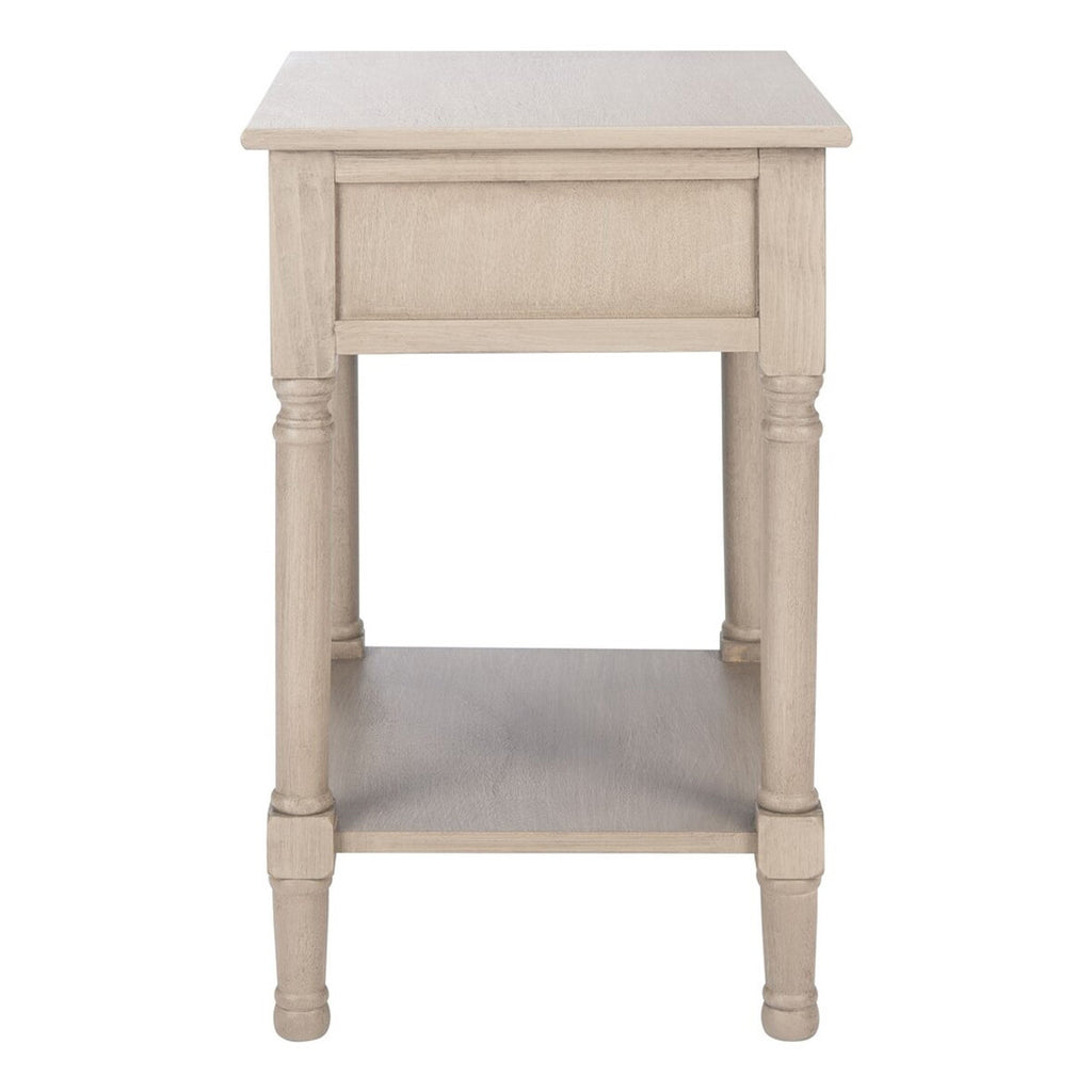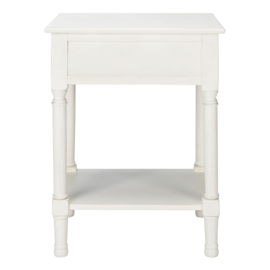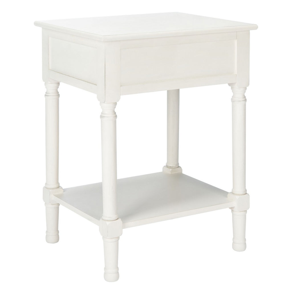 Give your classic contemporary décor a timeless touch of tradition with this accent table. The finely sculpted turned legs and carved details are treated to a modern farmhouse upgrade with the liner pattern on its single drawer and distressed white finish.