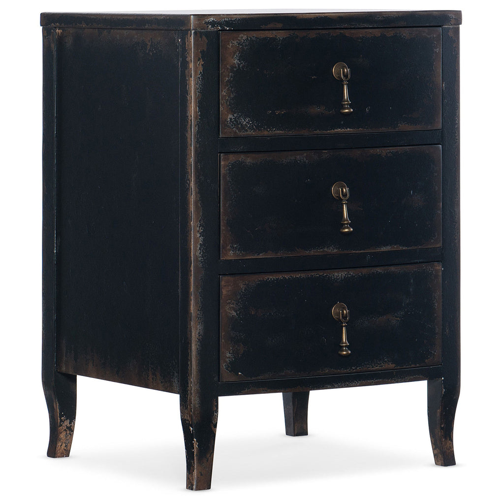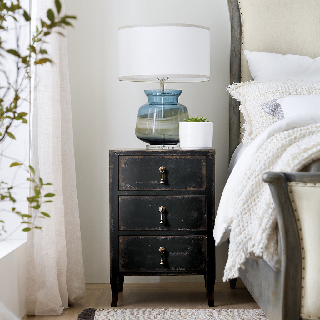 Perfect for adding vintage charm beside your bed, family room chairs or even in a kitchen or hallway, the 3-drawer Ciao Bella Telephone Table gives a style punch to even small spaces, at only 20 inches wide. Crafted of Poplar and Hardwood Solids with Maple Veneer, the table is finished in a exquisite soft black with multi-layering to appear it is aged gracefully through the decades. Features include a USB electrical outlet and cord clip on the back.