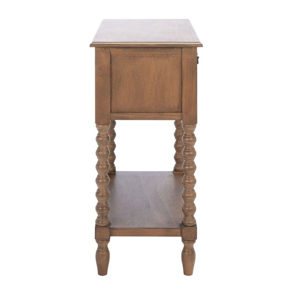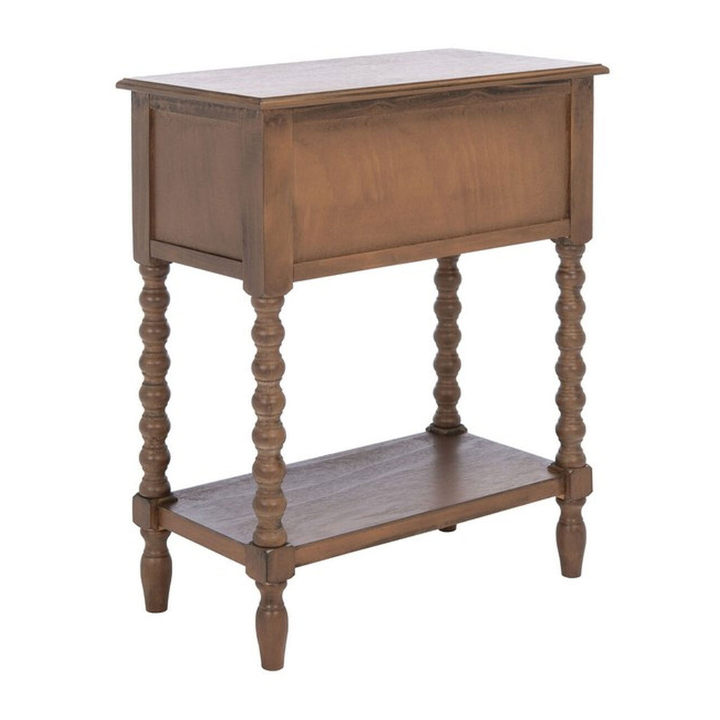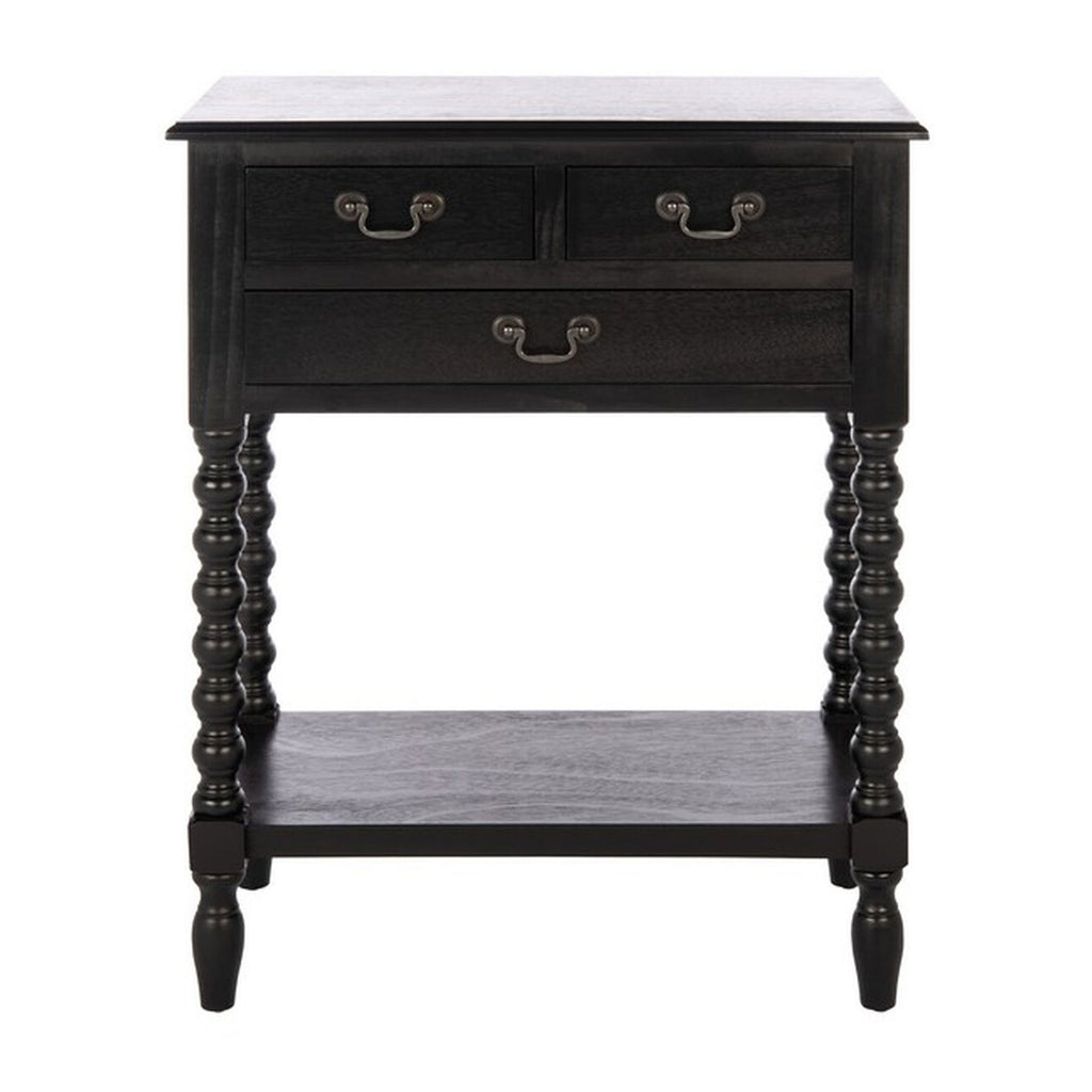 Bring farmhouse charm to any classic contemporary décor with this side table. The modernized ball turned legs are beautifully highlighted by its distressed white finish, while an open bottom shelf and three slim drawers provide ample storage and display space.