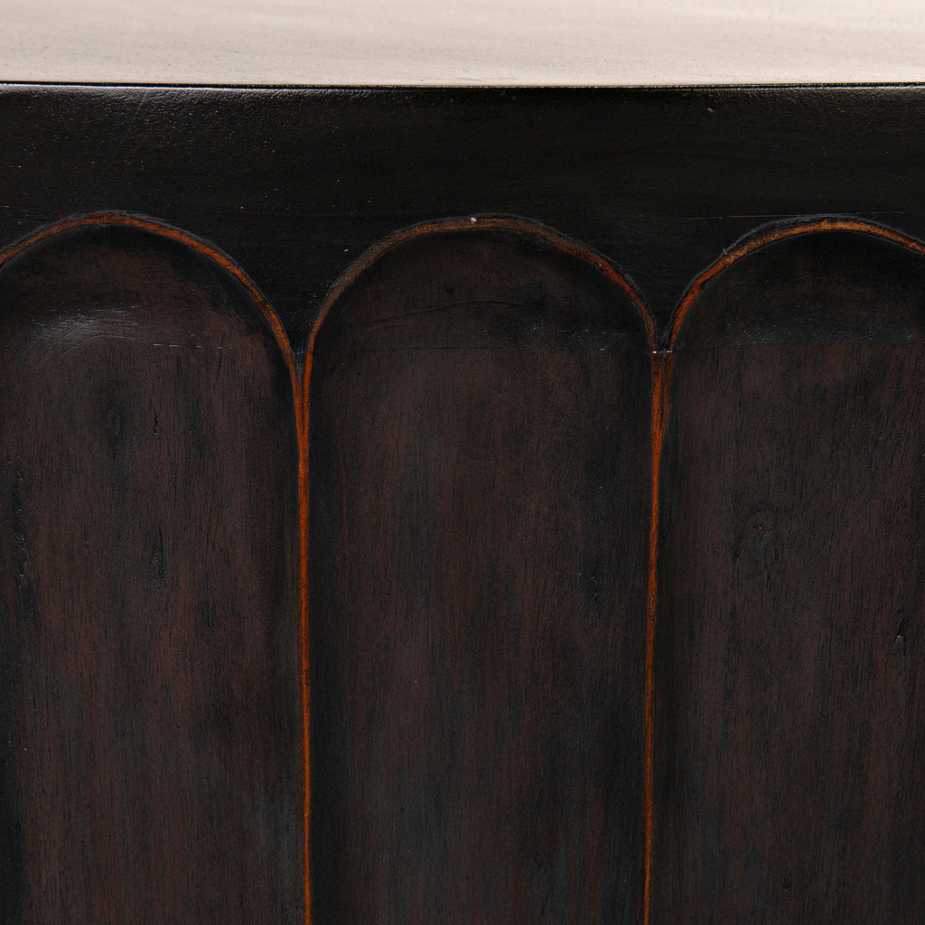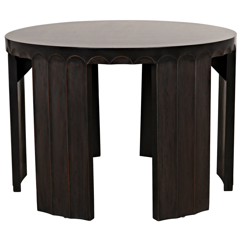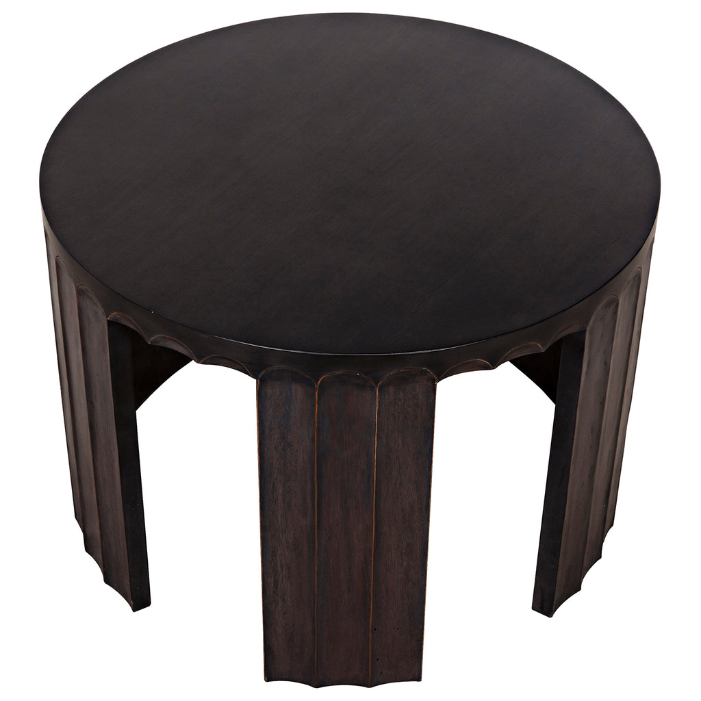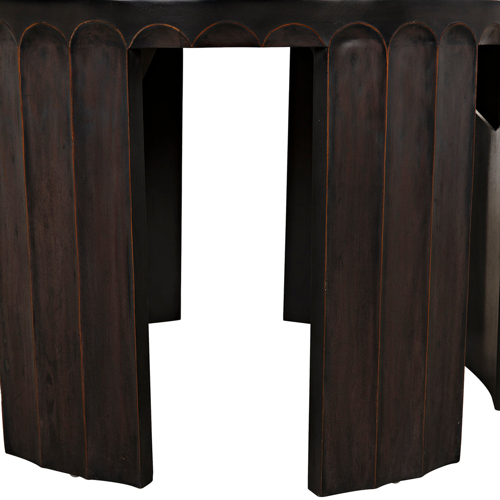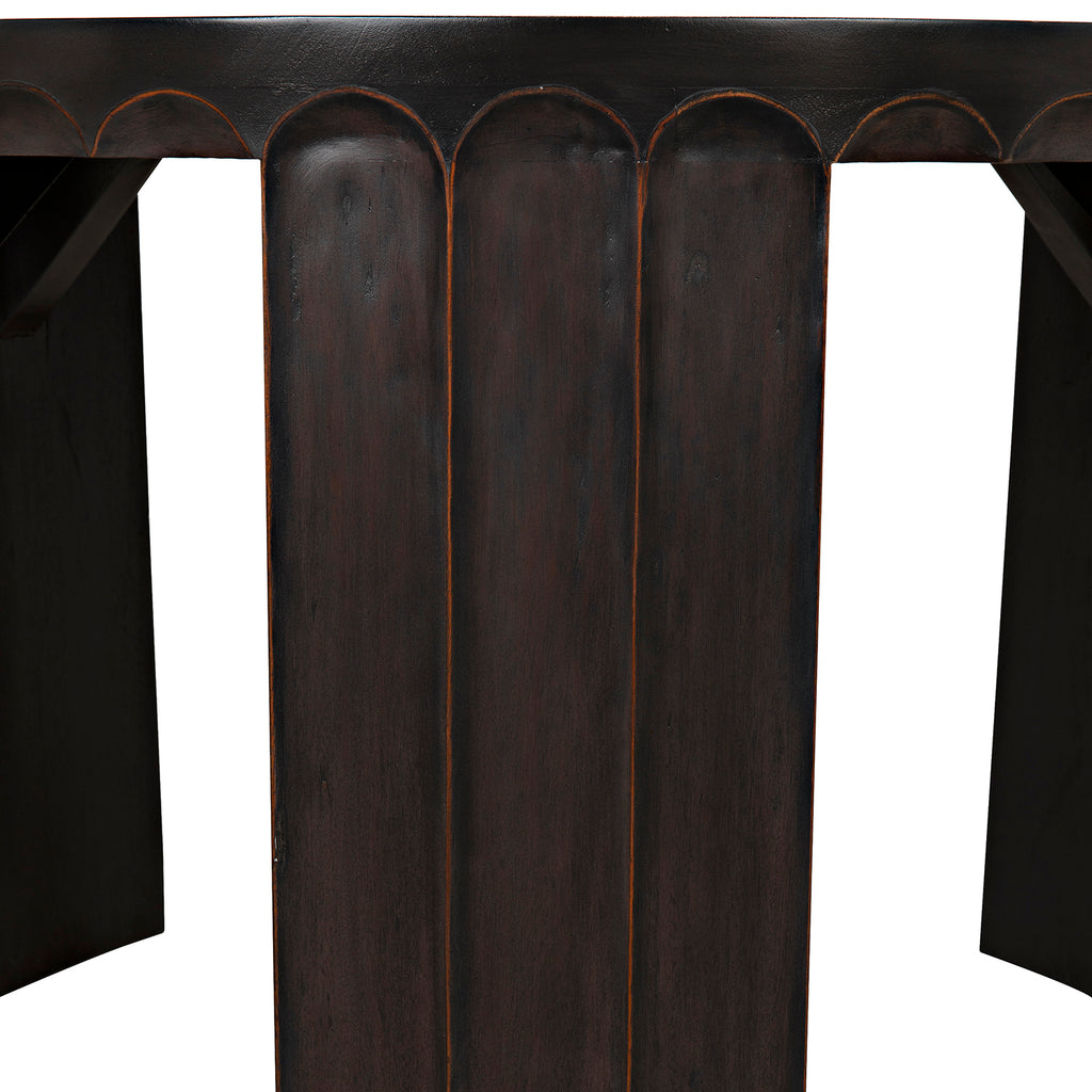 The Fluted accent table collection in mahogany features a classic column structure accented with bold ribbing detail on each of the six legs. The 32-inch top is additionally embellished with hand-carved fluted details. Finally, richly applied layers of Noir's exclusive Pale finish are paired with touches of light brown trim to showcase the beauty of the wood.