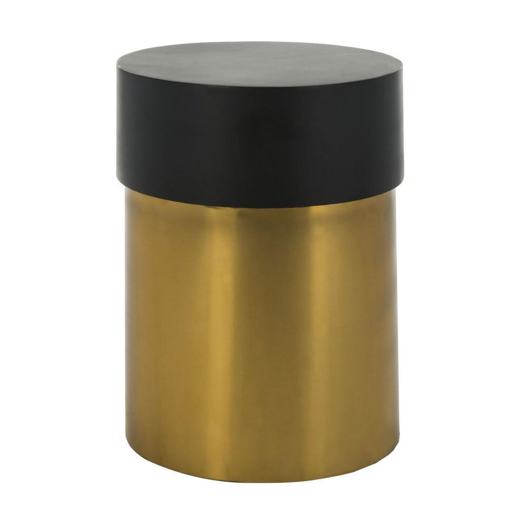 Modern sculpture inspired this contemporary metal round side table. Bold and beautiful, it creates a dramatic focal point in any living room with its smooth black top and bright polished gold finish. Use in pairs for an extra luxurious look.