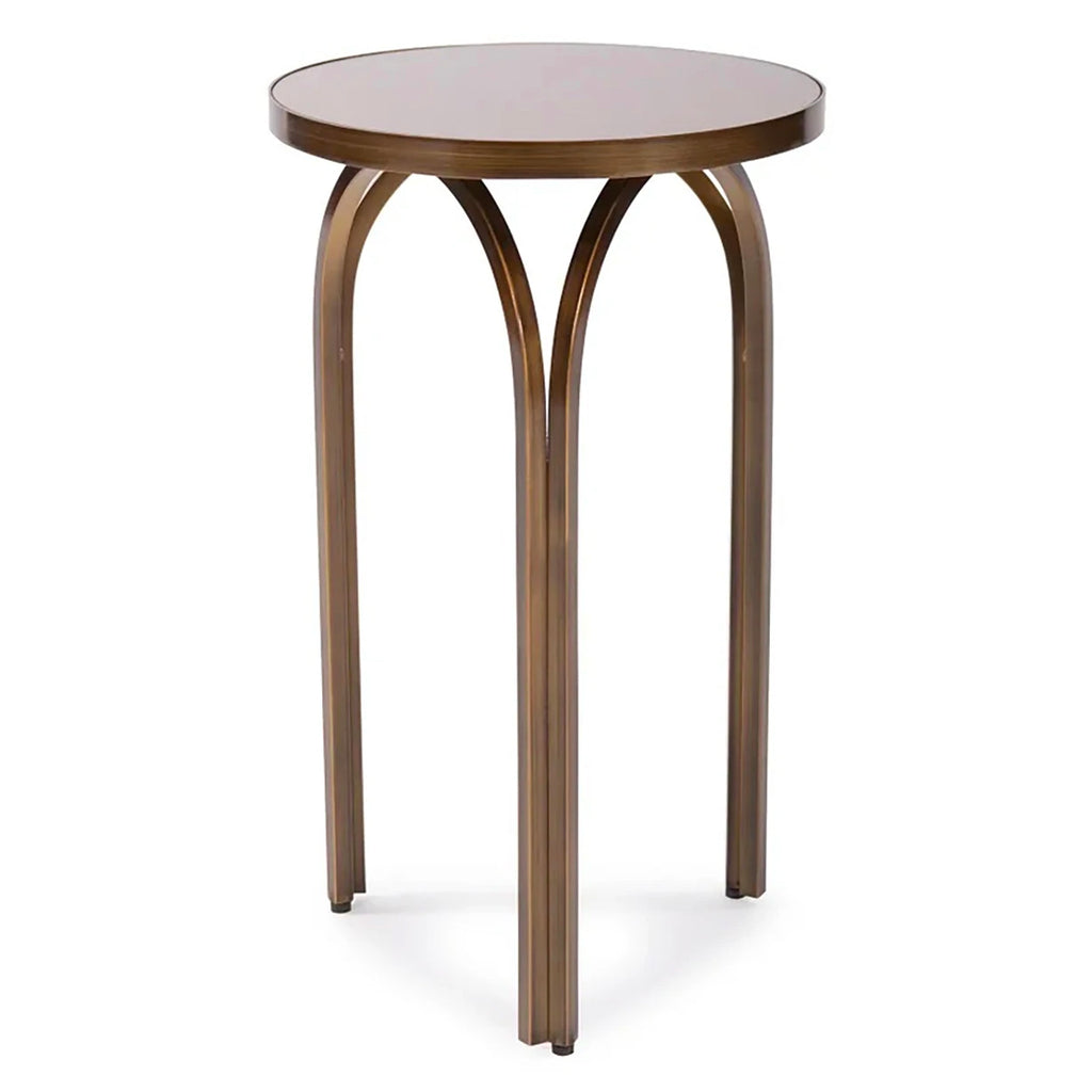 The arched windows of the early 18th century inspired the design of the Palladio Side Table. The hand rubbed bronze finish not only highlights the curved edges but also adds to the richness and feel of the overall style. It is topped with a tempered tea tinted glass top. Pair with the other pieces in the collection to complete the look.