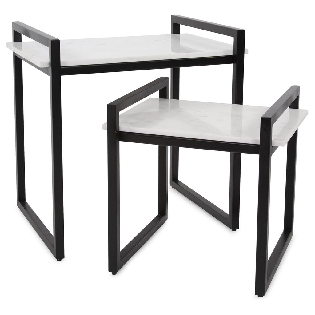 The inspiration for the Santiago tables came out of fashionable post modern tables that were functionable and stylish at the same time. The original nesting tables were manufactured to save on space and could be separated if more tabletop space was needed for entertaining larger groups of people. The Treto tables each feature a beautiful white marble top that is suspended between a matte black iron frame. This styling fits right at home in an industrial loft or modern Highrise condo.