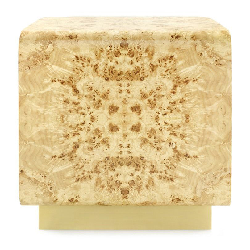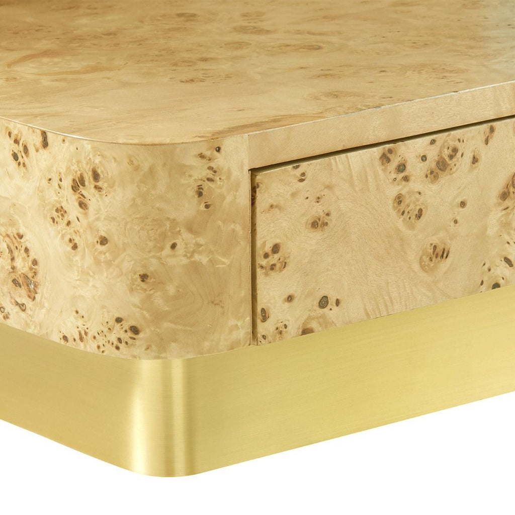The V&H Emil Collection combines a simple Art-Deco inspired silhouette with the mesmerizing swirling pattern of natural burl-wood veneer. Adorned with brushed-brass accents, this beautifully detailed collection exudes an elevation of richness.