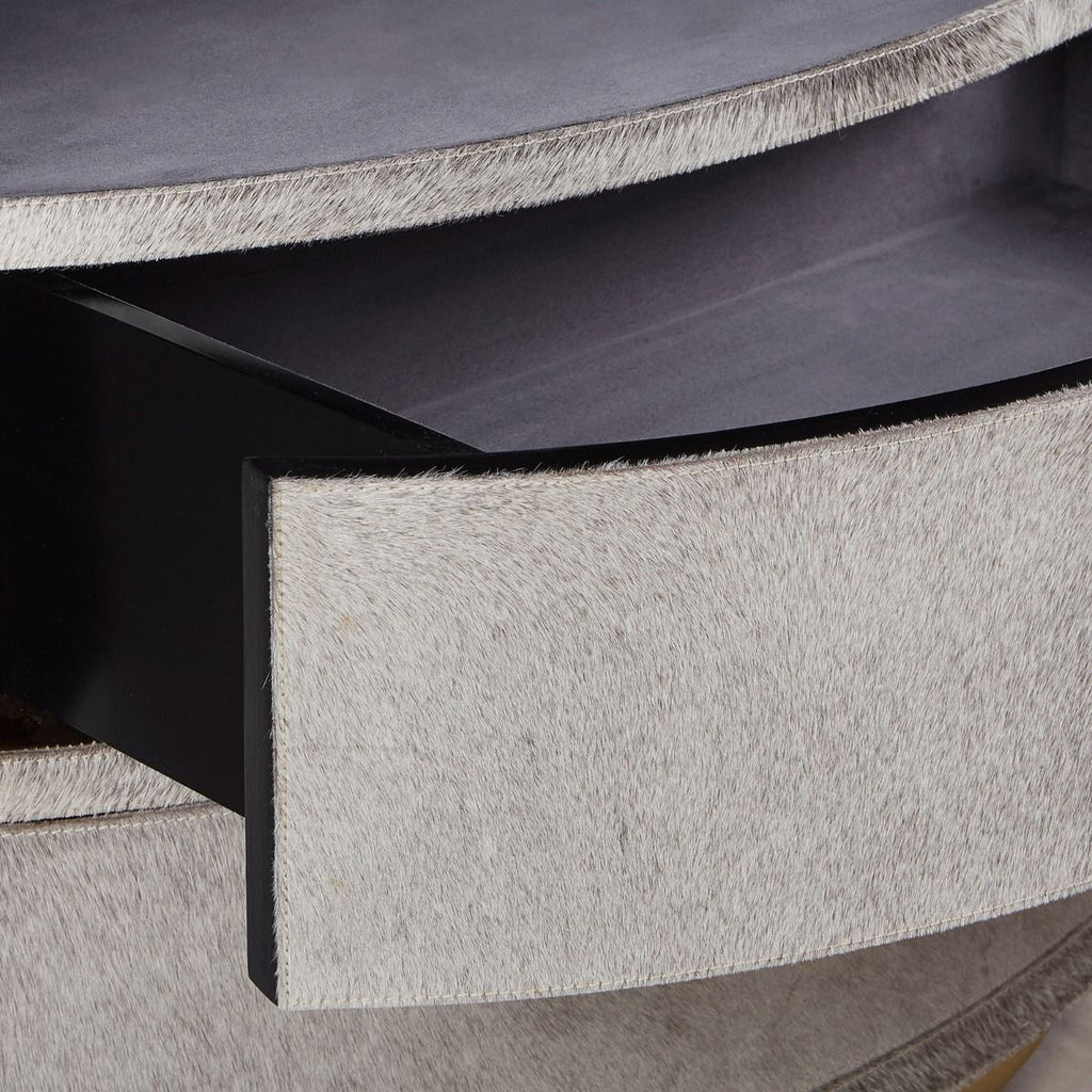 In the V&H Julius Collection, they've paired Hair-on-Hide with a cosmopolitan silhouette and custom hardware, elevating it to a new level of elegance. With details such as micro-suede interiors, and soft-closing guides, these pieces are the epitome of chic.