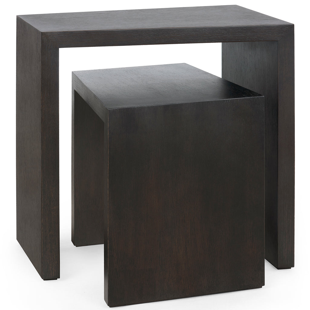 The Lucy Nesting Tables offer a modern twist on traditional nesting tables. Their angled shapes add visual interest and maximize versatility. Crafted using gorgeous oak veneers, these tables boast parallelogram tops which are canted along one edge to give them a contemporary asymmetry. Perfect for creating a sophisticated, layered, and inviting living room.