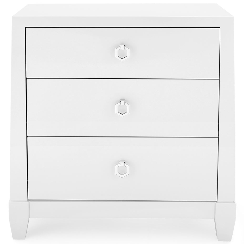 Elevate your interiors with the Madison Collection, where simplicity meets elegance. The tapered sides and feet add a touch of elegance, while the graduated drawers with polished nickel pulls give it a clean, refined look. Crafted from exquisite wood and finished with beautiful lacquer, this understated beauty seamlessly enhances any interior style.