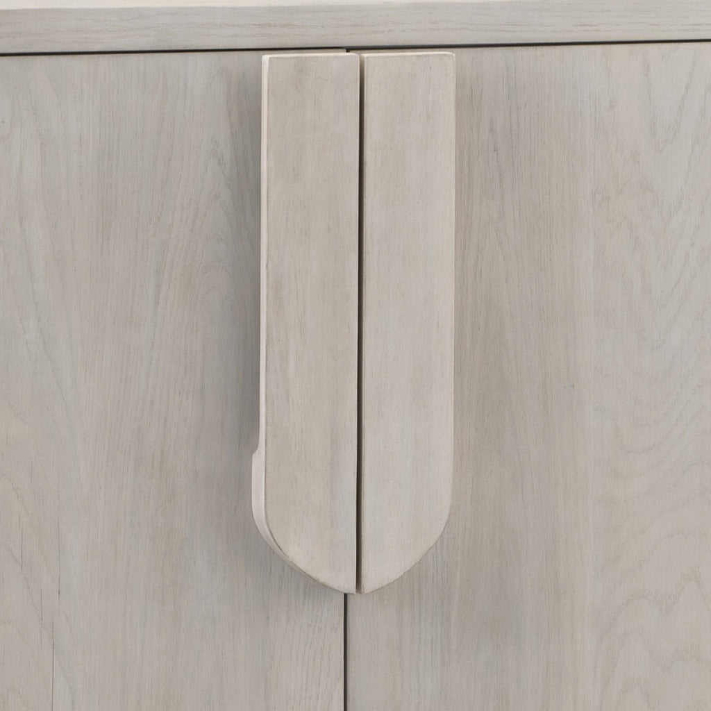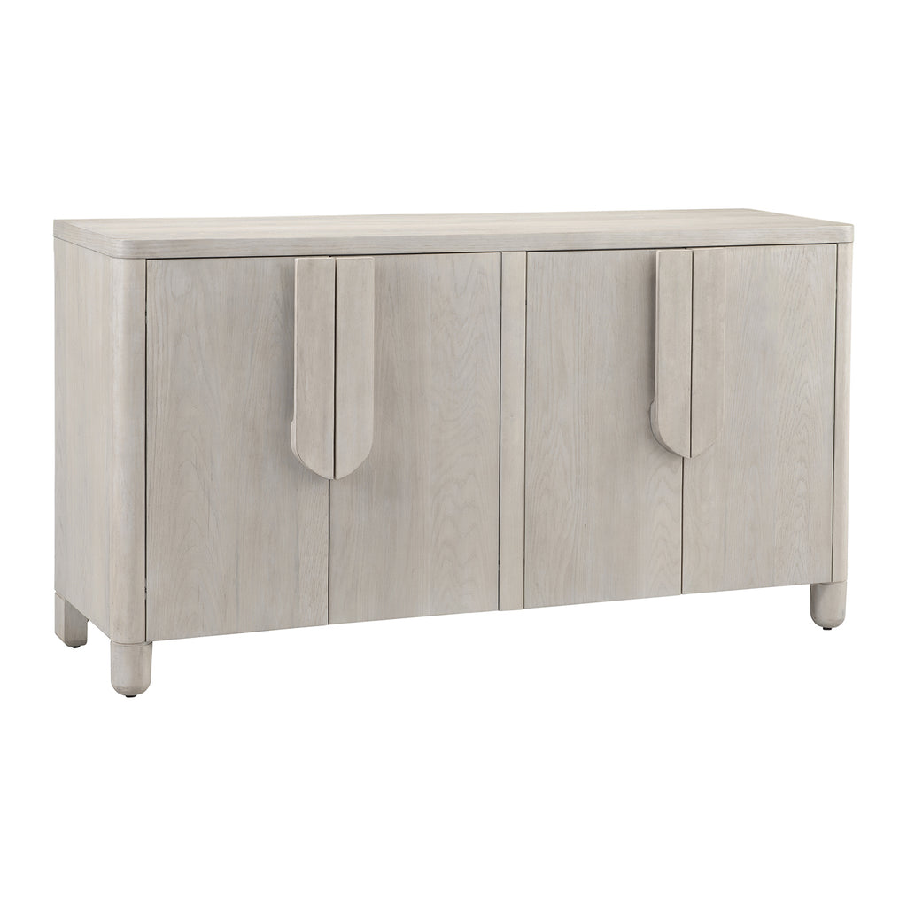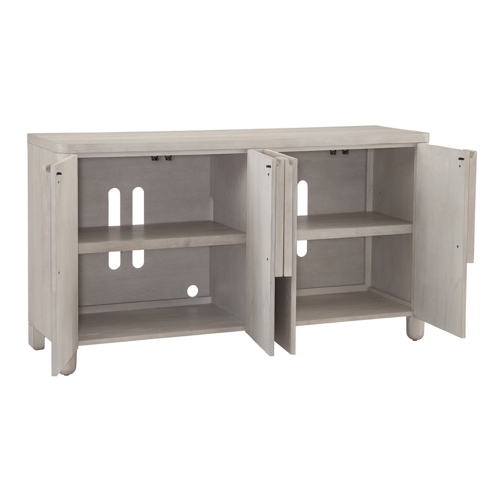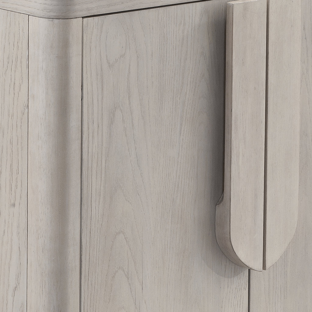 The Karina Server effortlessly combines refined glam with a modern and chic design, creating a piece that's as stylish as it is functional. Its minimalist design showcases a lovely washed blonde oak finish, complemented by soft curves that carry throughout the collection. Crafted from high-quality rubberwood solids and flat cut oak veneers, the Karina Server exudes both elegance and durability, making it a stunning addition to your home decor. With four doors opening to two cabinets, each featuring an adjustable shelf and convenient media cable storage, this server is not only a beautiful piece but also a practical addition to your living space.