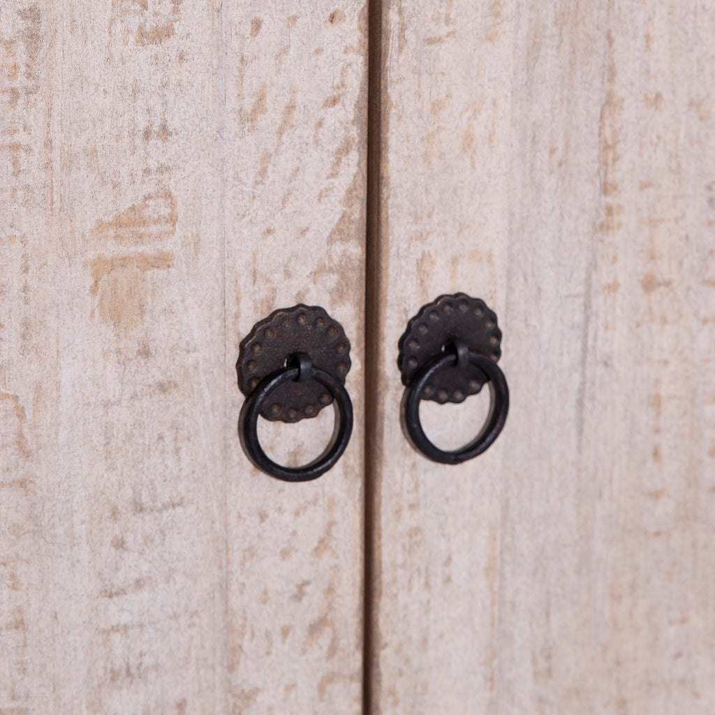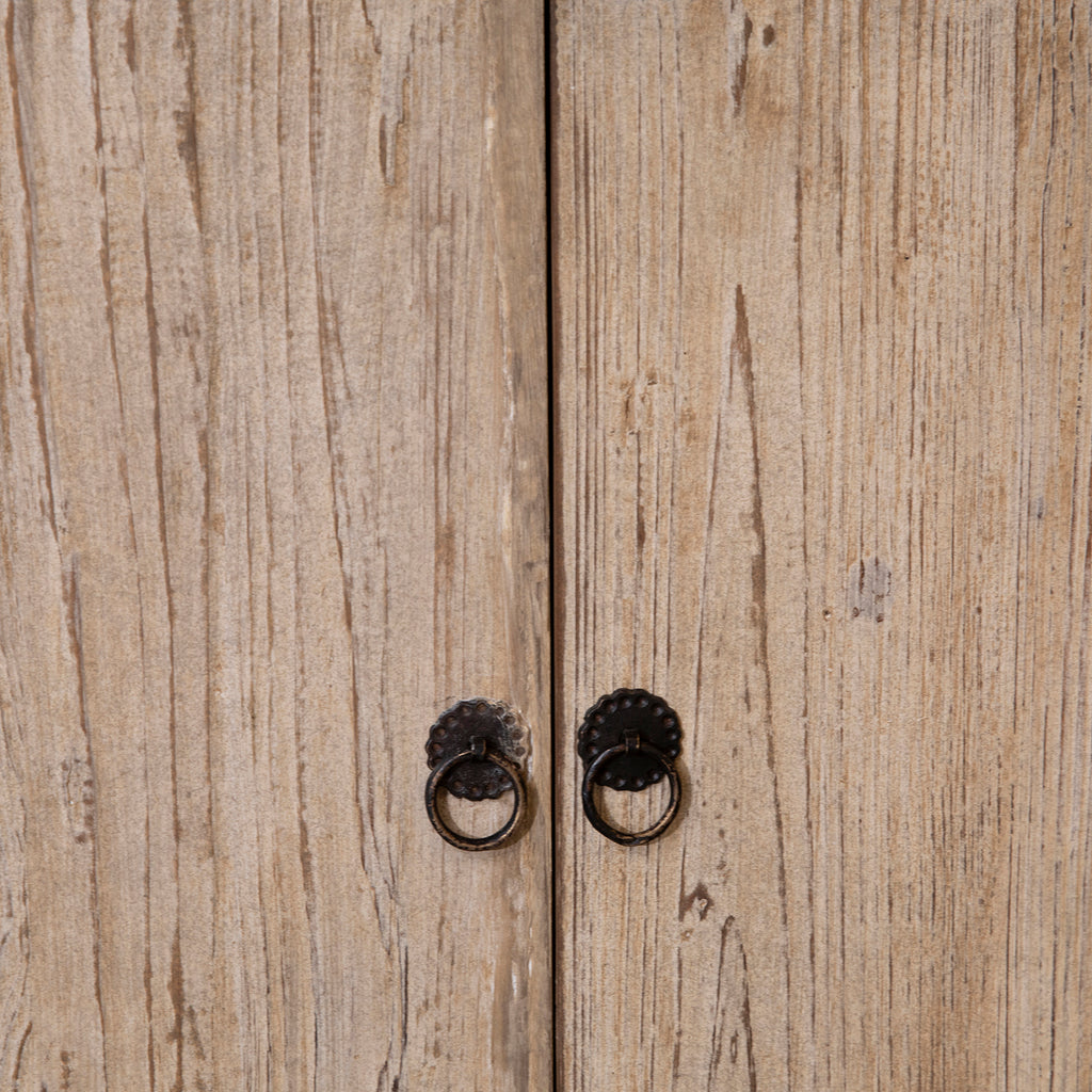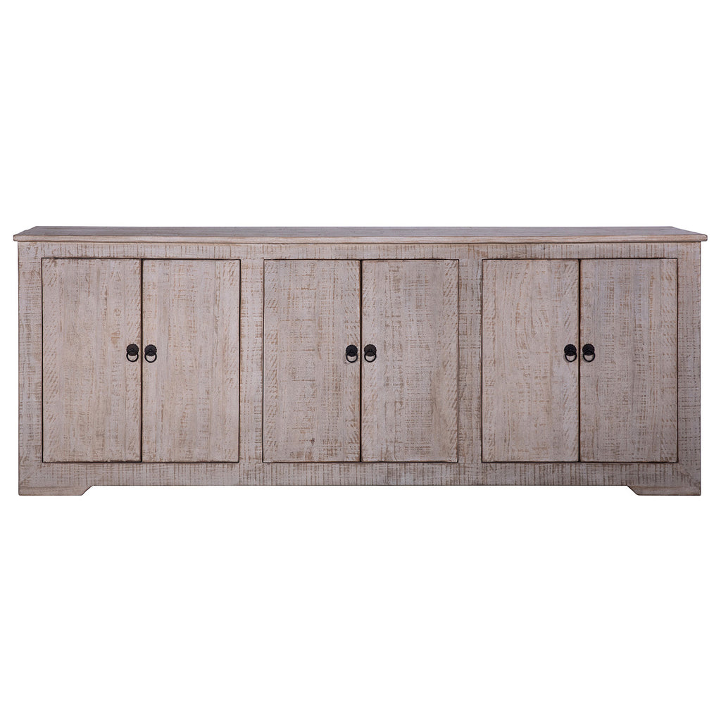 The Harrison Sideboard is made from reclaimed Pine hardwood. Finished with a beautiful, light warm wash finish and with a solid heavy construction with butterfly door accented with toggle style Iron door pulls that open to large storage cabinets. This beautiful sideboard comes with built-in shelving to hold all your belongings and keep them need and organized.