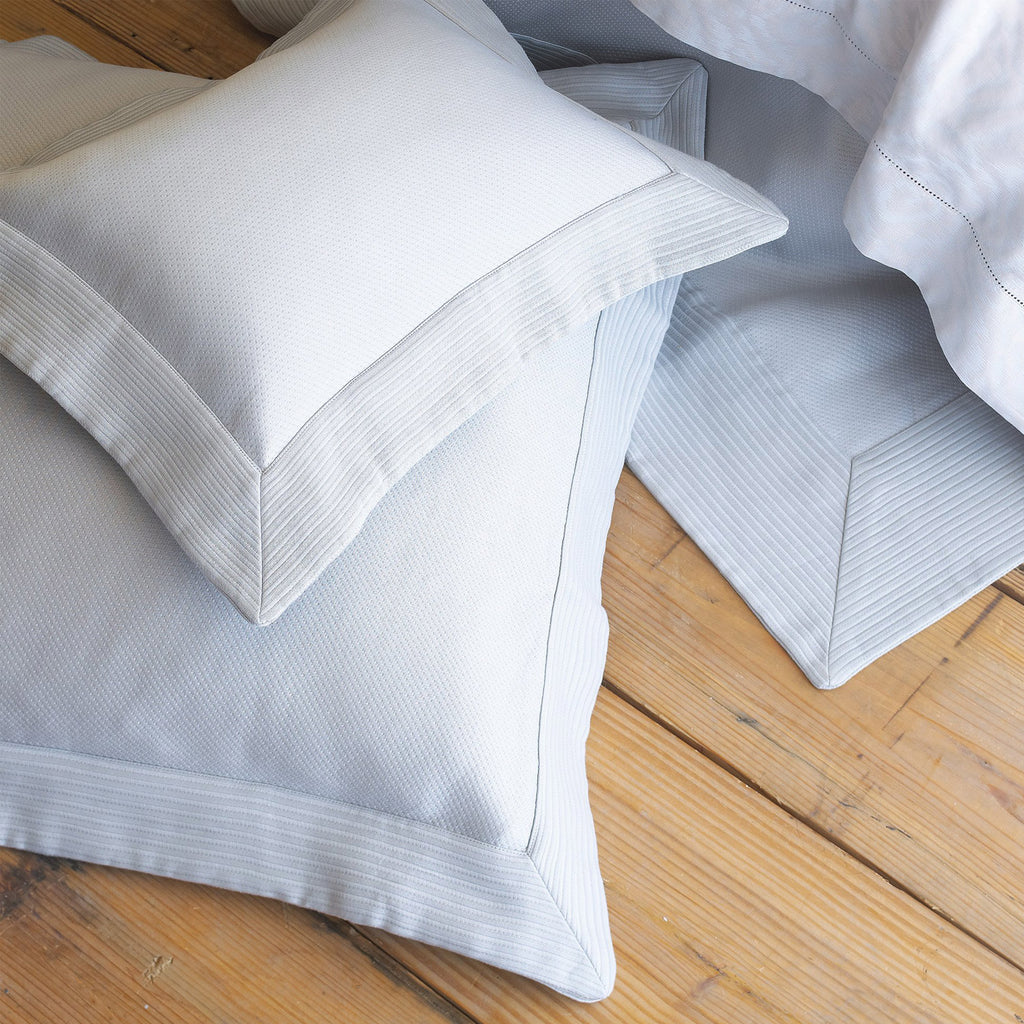 The Peacock Alley Angelina matelasse pillow sham brings tailored perfection to your pillows. These pique shams are trimmed in a 2.5in striped border, and given a mercerized finish for softness.